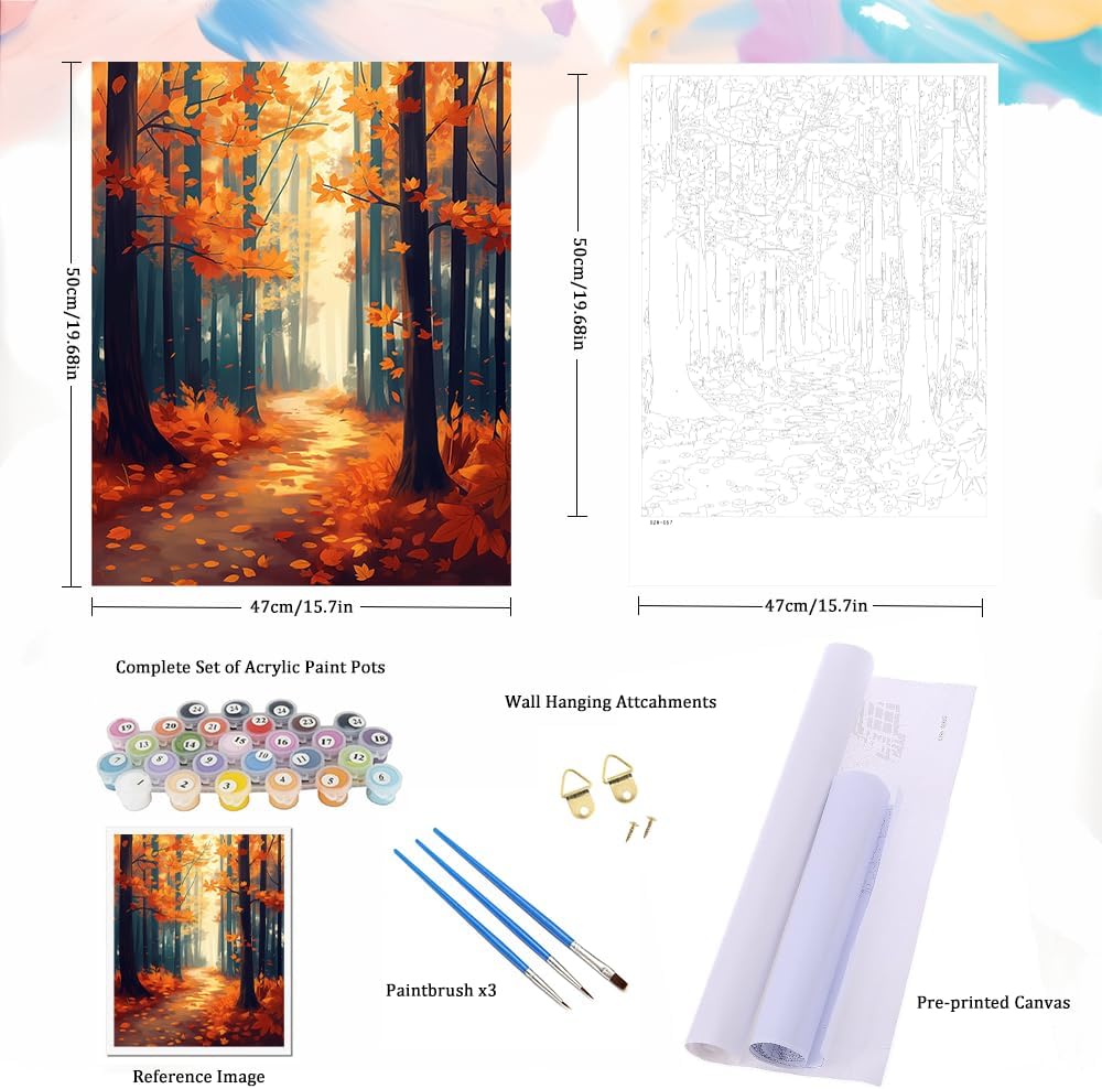 16" Wx20 L Canvas Pictures Drawing Acrylic Paintwork with 3 Pcs Paintbrushes