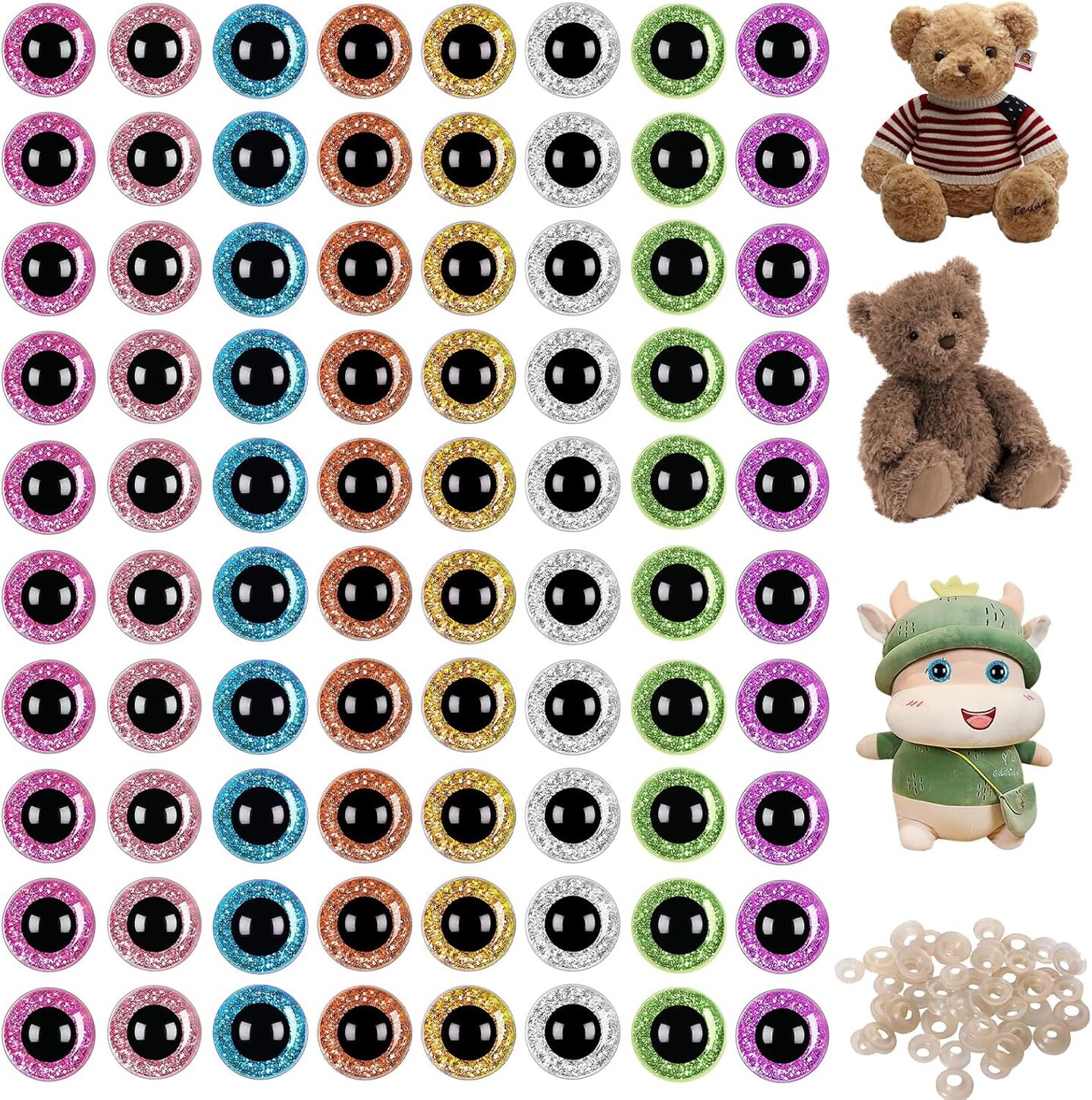 160 Pcs Glitter Safety Eyes - 16 mm (8 Colors)