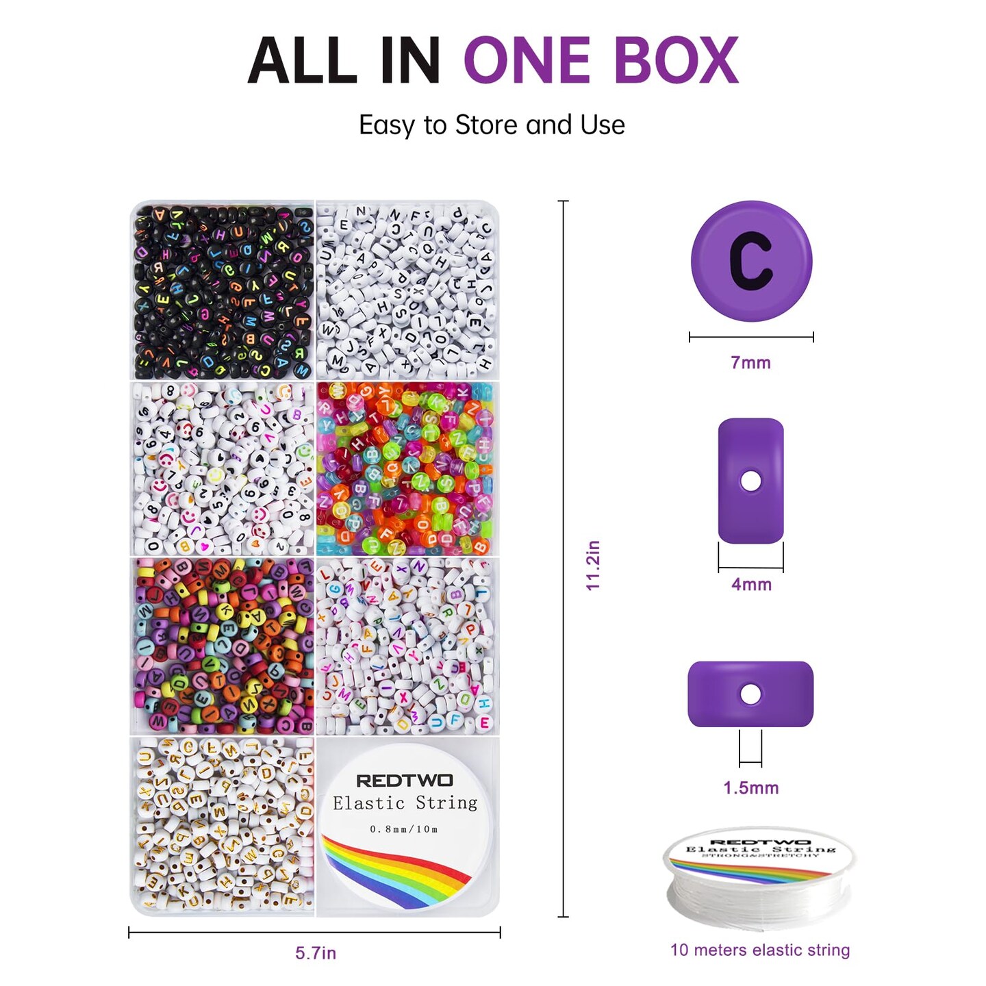 1600 Pcs Letter Beads Kit, 6 Styles of Colorful Alphabet Beads for Bracelet, Number Beads Smiley Face Beads Heart Beads and a Roll of Elastic String for Friendship Bracelet Kit.