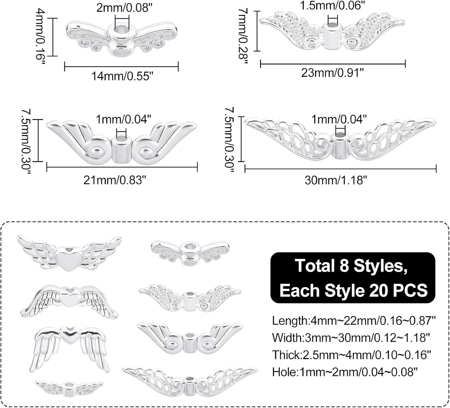 160pcs 8 Styles Angle Wing Bead for Crafts