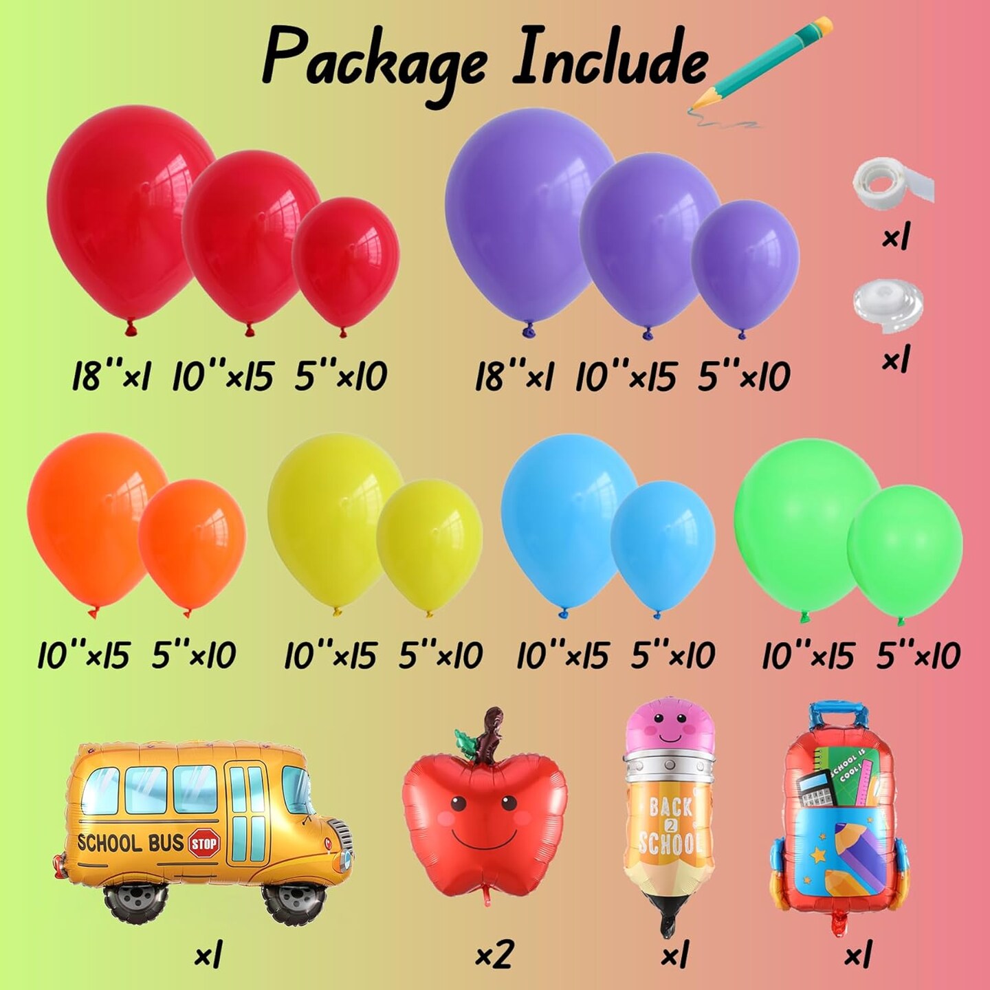 160Pcs Back To School Balloon Arch Garland Kit