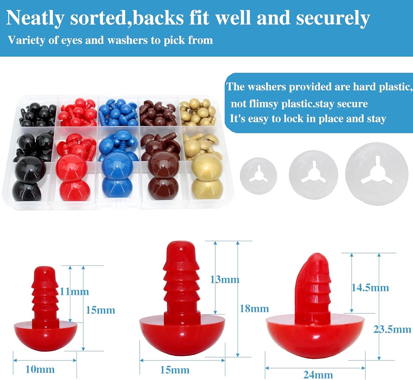 160pcs Threaded Shank Plastic Safety Eyes with Washers for Amigurumi, Dolls, and DIY Crafts