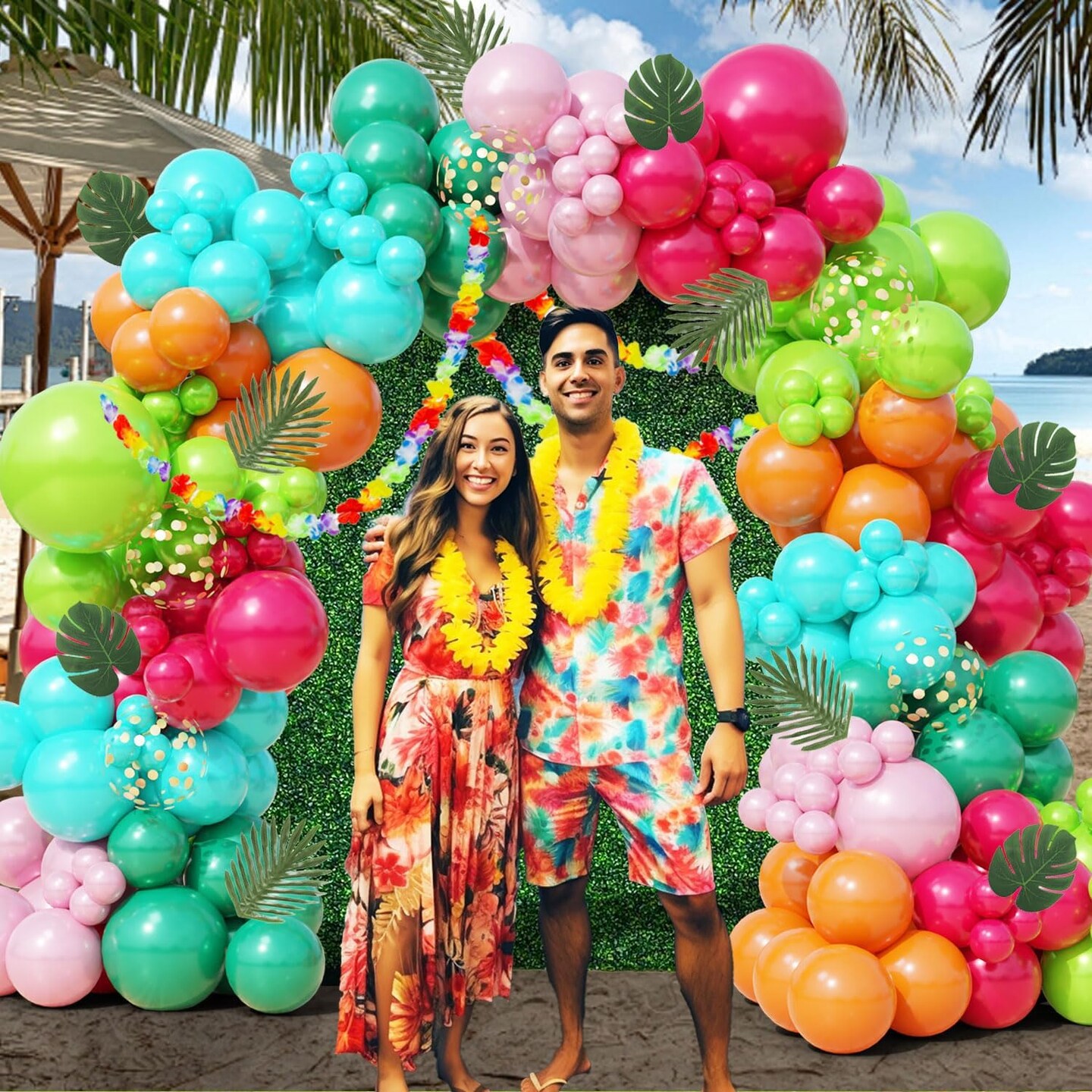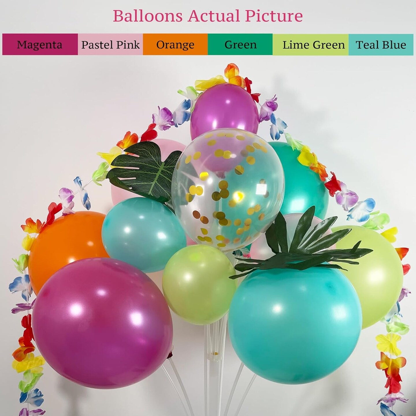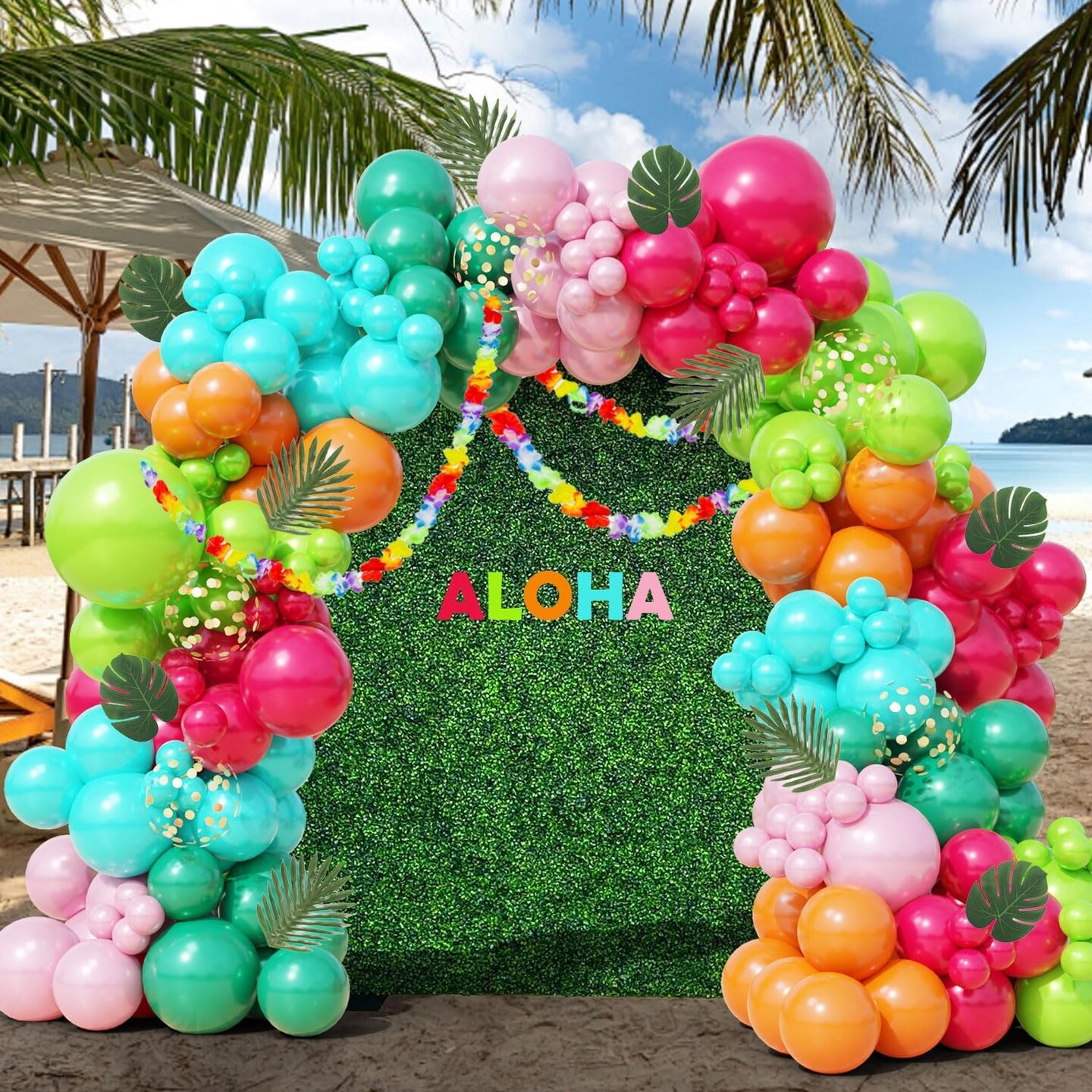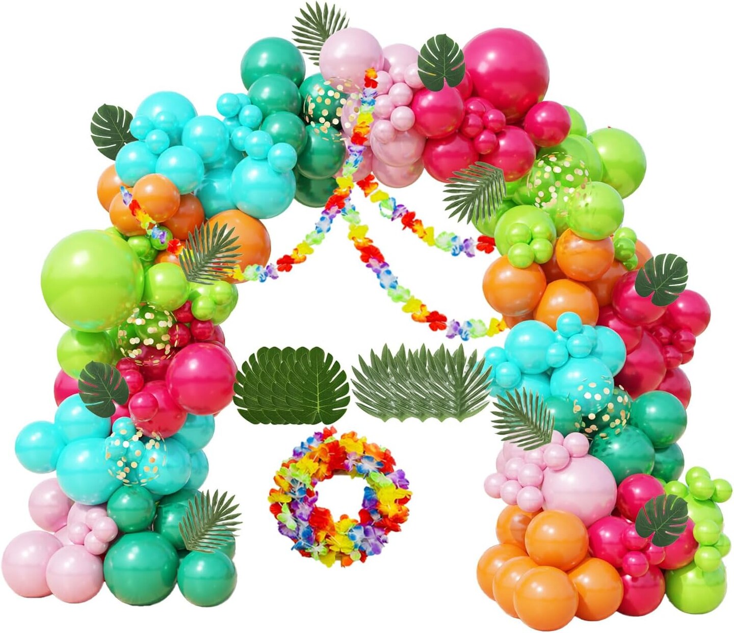 161-Piece Tropical Balloon Arch Kit – Hawaiian Theme with Rose Gold Confetti Balloons, Palm Leaves, and Flowers for Summer Luau, Baby Shower, Beach, Flamingo Pool, and Aloha Birthday Party Decorations