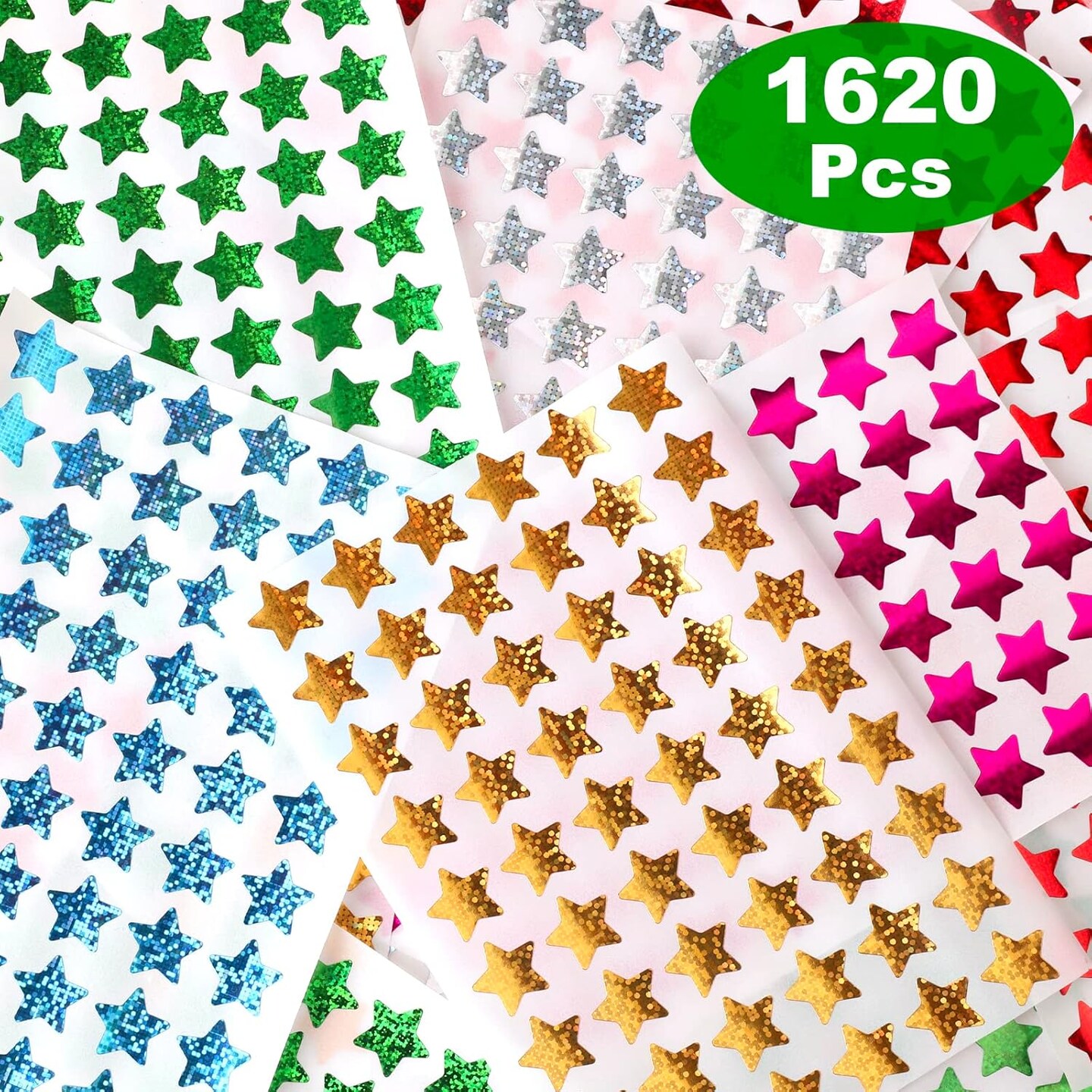 1620 Pack, 6 Colors, Holographic Small Star Stickers for Kids Reward