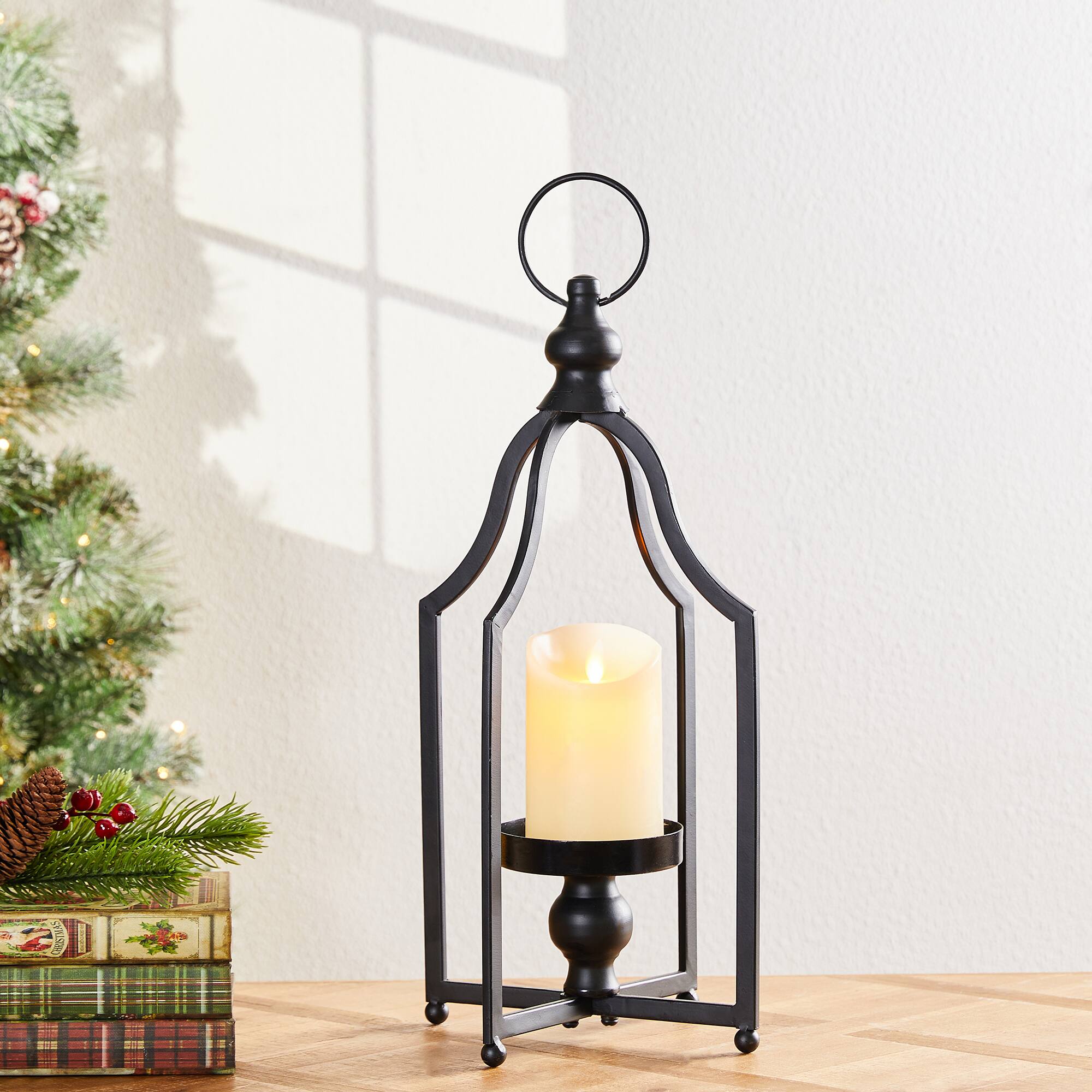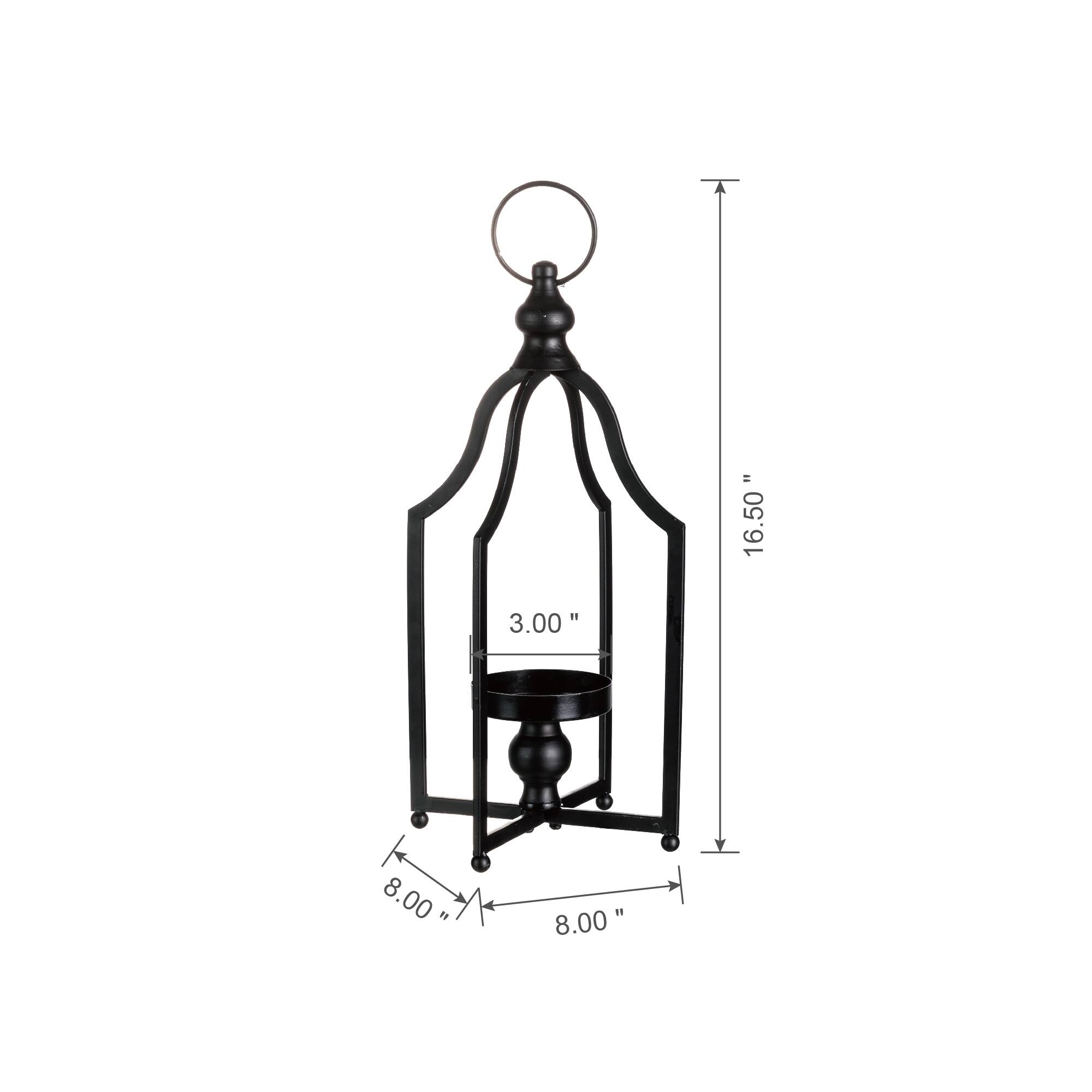16.5" Modern Farmhouse Black Metal Candle Lantern