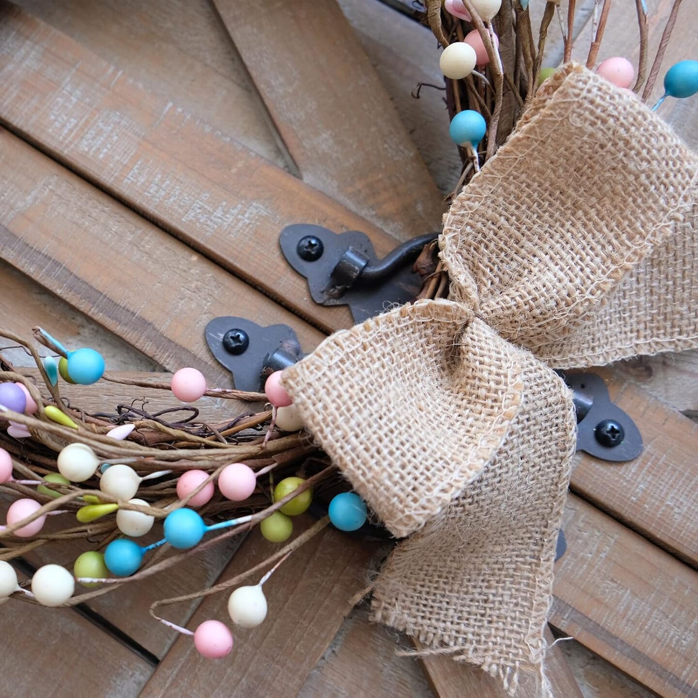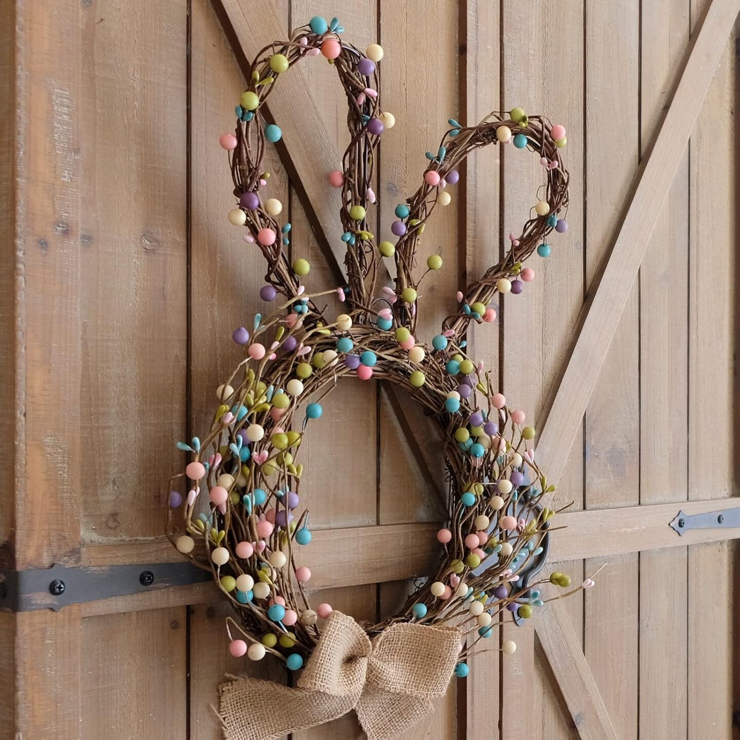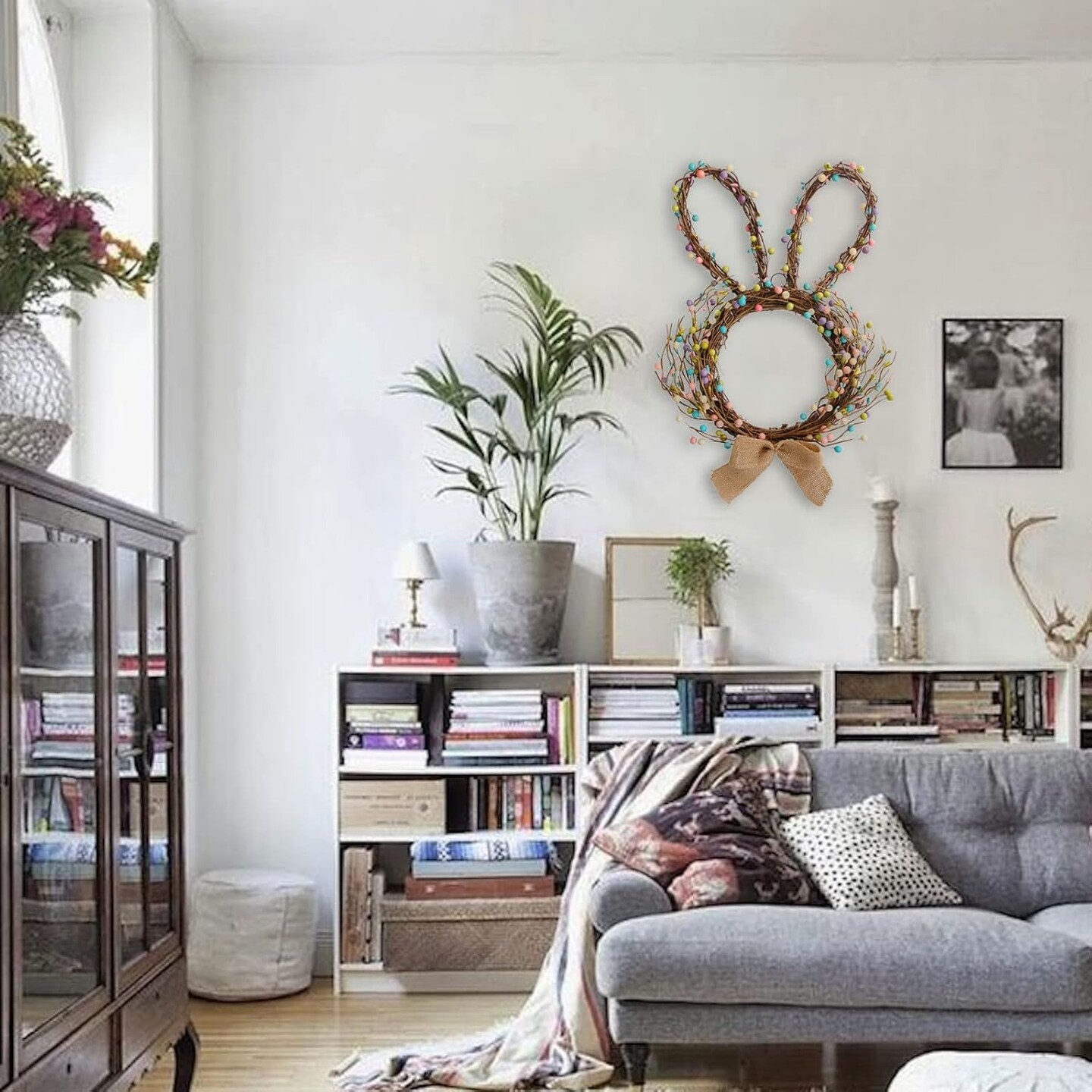 16.5-Inch Easter Bunny Wreath – Front Door & Wall Spring Decor with Twig Base, Berries, and Blossom Rabbit, Indoor & Outdoor