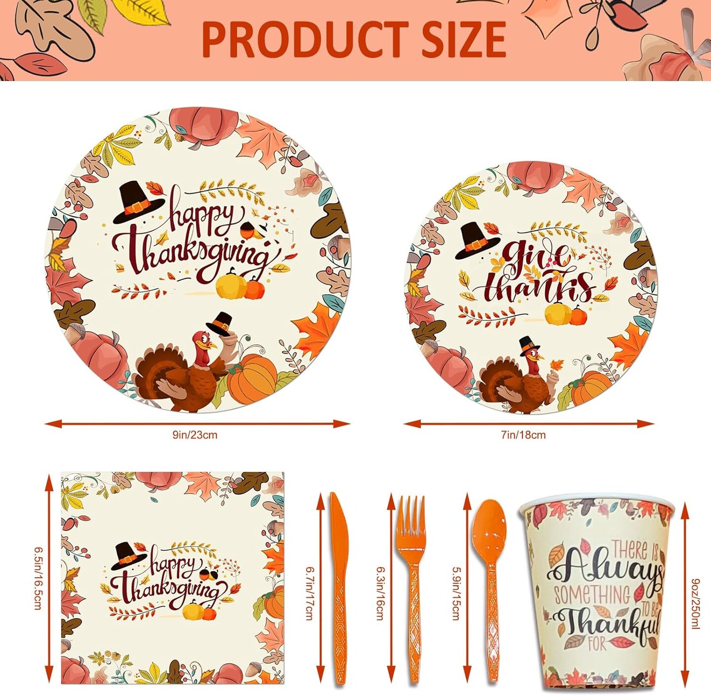 168 PCS Thanksgiving Disposable Tableware Sets - Paper Plates Napkins Cups Cutlery (Give Thanks)