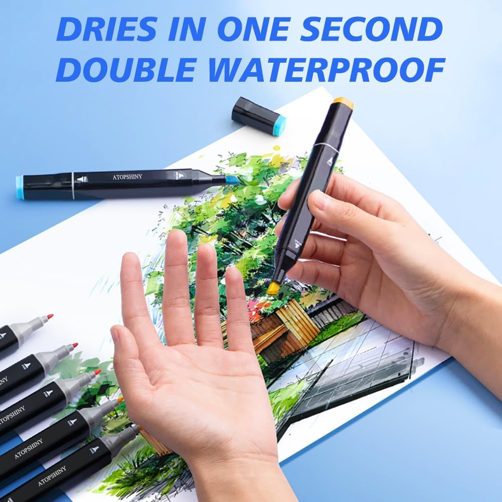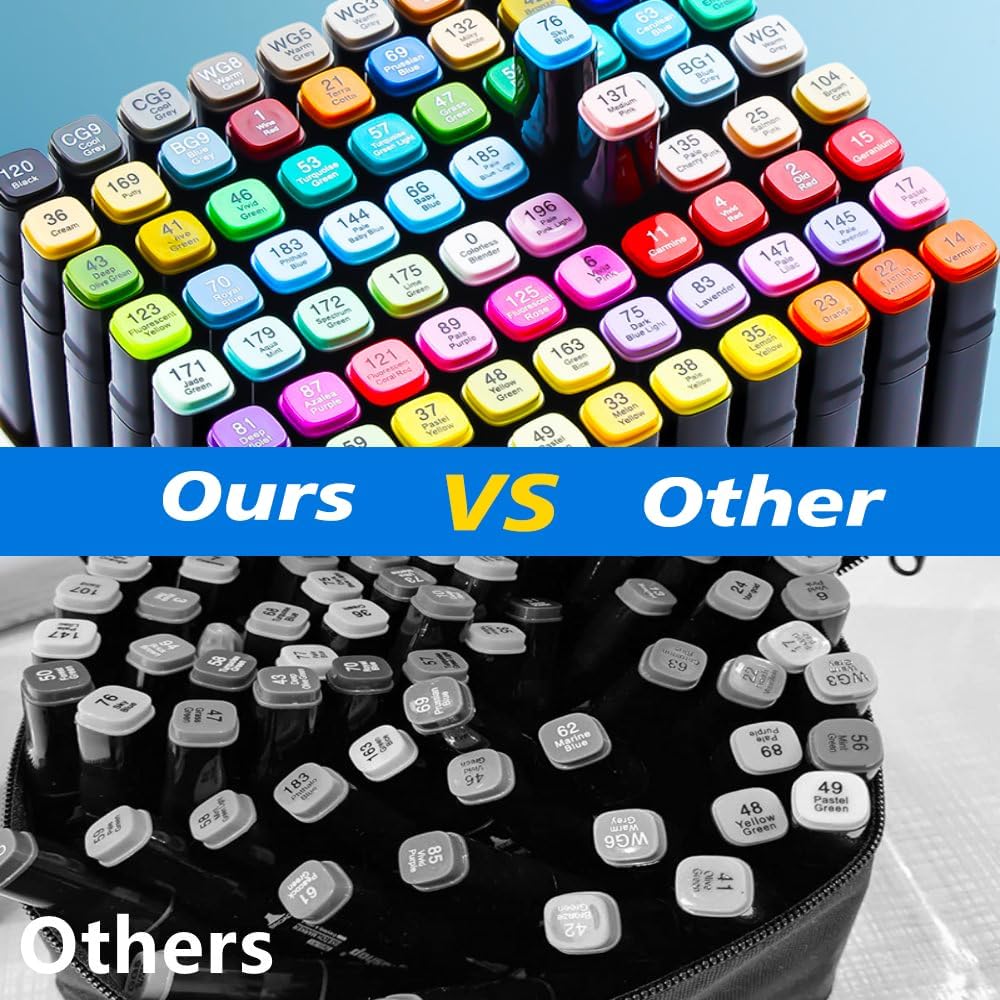 168-Color Dual Tip Alcohol Markers Set – Permanent Art Markers for Kids & Adults, Refillable with Black Carrying Case
