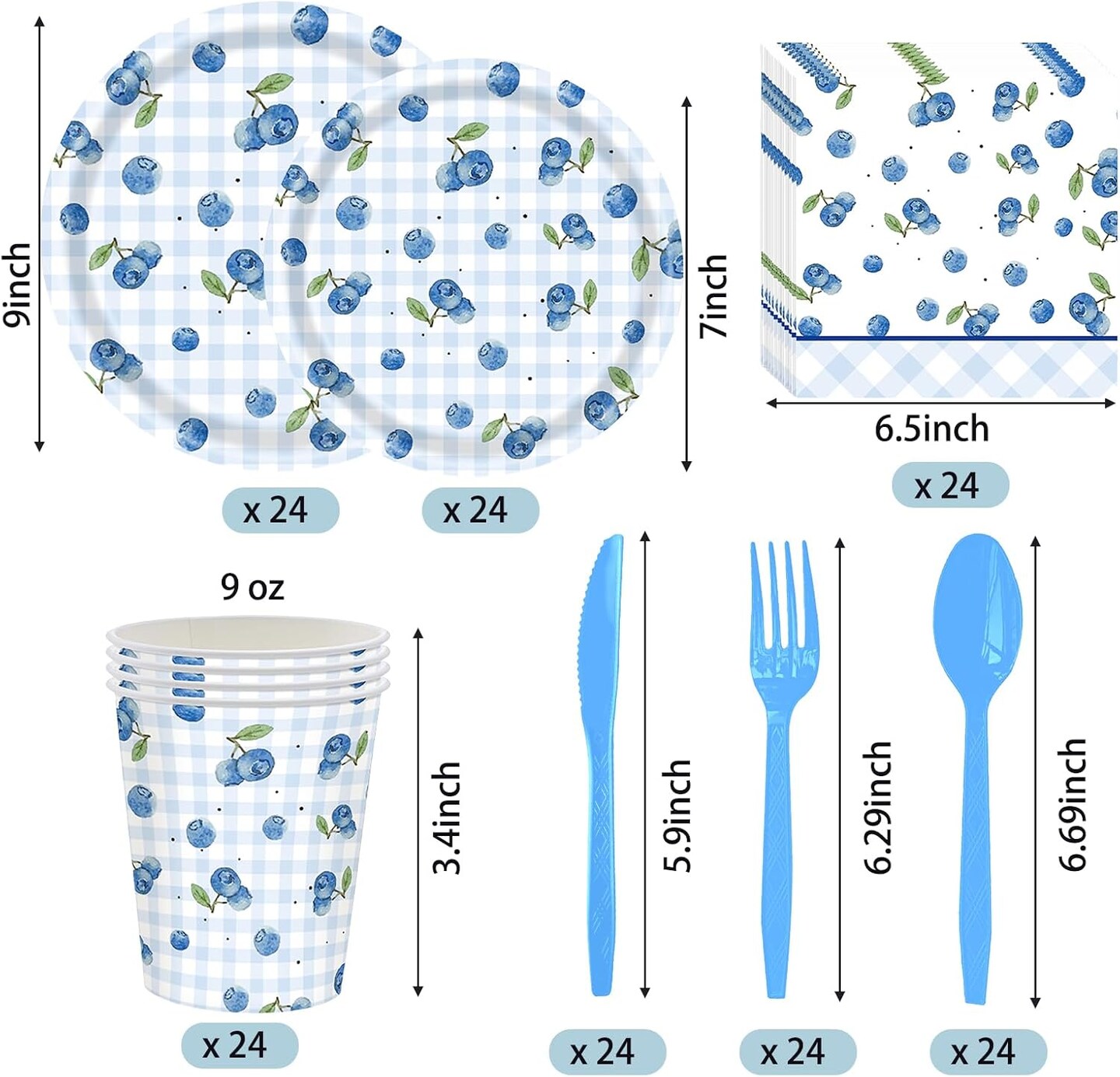 168PCS Blueberry Birthday Party Tableware Sets 24 Guests (Blueberry)