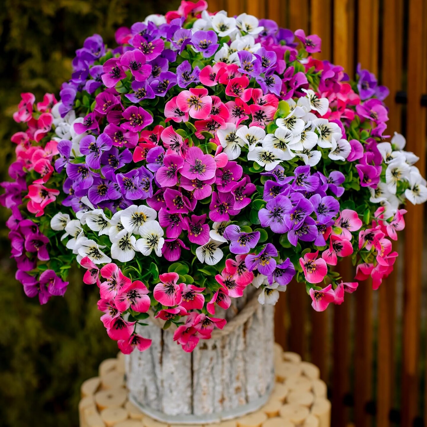 16-Bundle Artificial Pansy Flowers – UV-Resistant, No-Fade Faux Plants for Outdoor and Indoor Decor, Garden, Porch, Patio, and Home