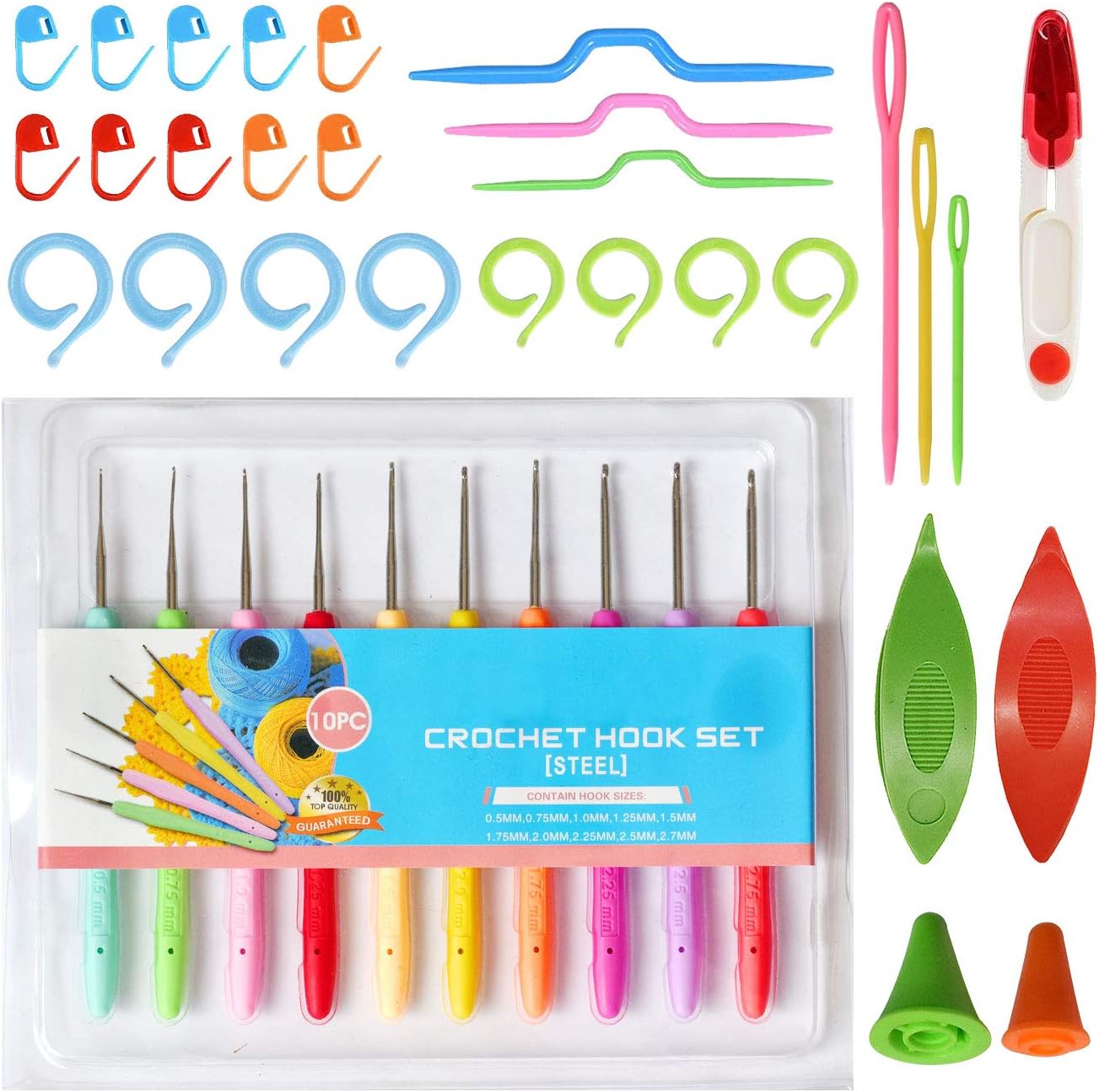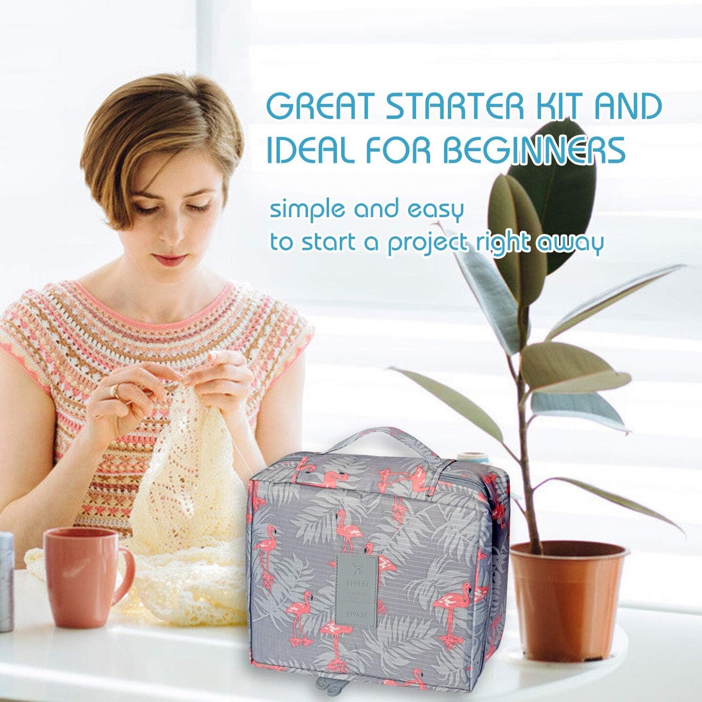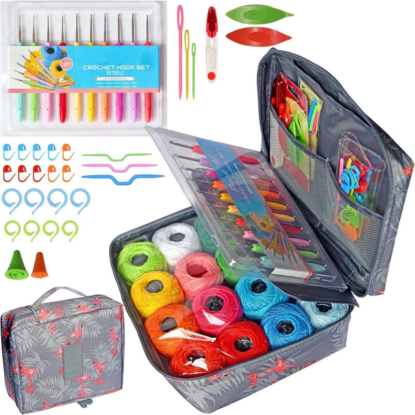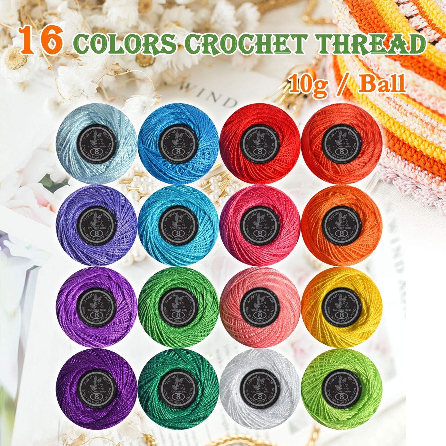 16-Color Crochet Thread Kit – Complete Beginner Set with Crochet Hooks, Weaving Needles, Stitch Markers & Storage Bag for Knitting & Craft Projects