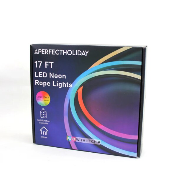 16ft Flexible RGBIC Neon Rope Light — Music Sync, Remote & Power Adapter