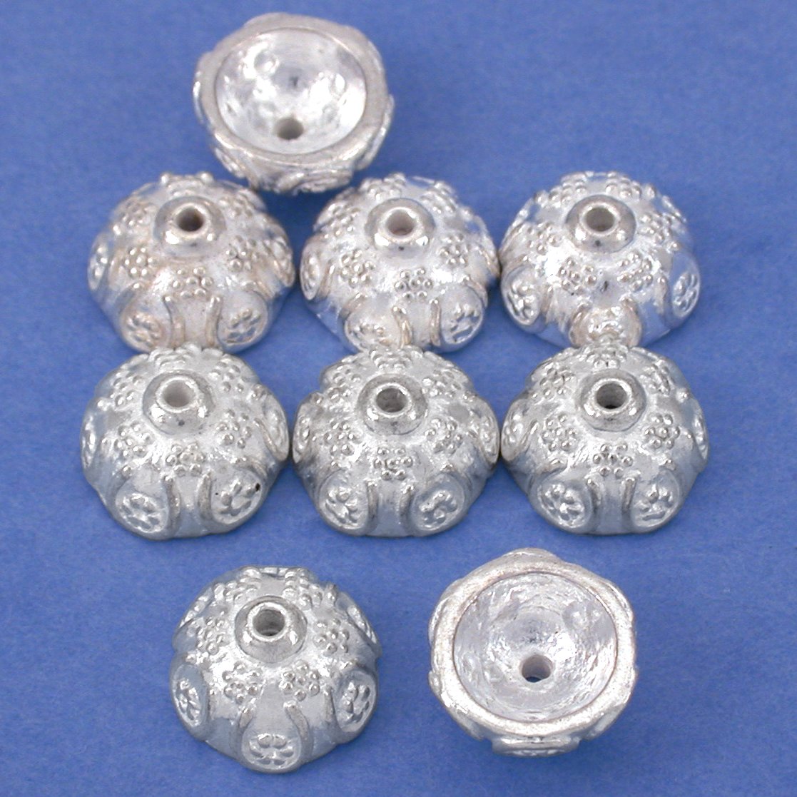 16g Bali Flower Bead End Caps Silver Plt 11mm Approx 8