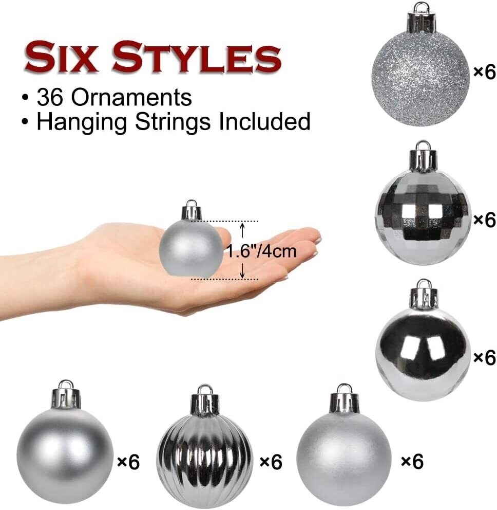1.6in 36-Piece Shatterproof Christmas Balls - Xmas Tree Ornaments