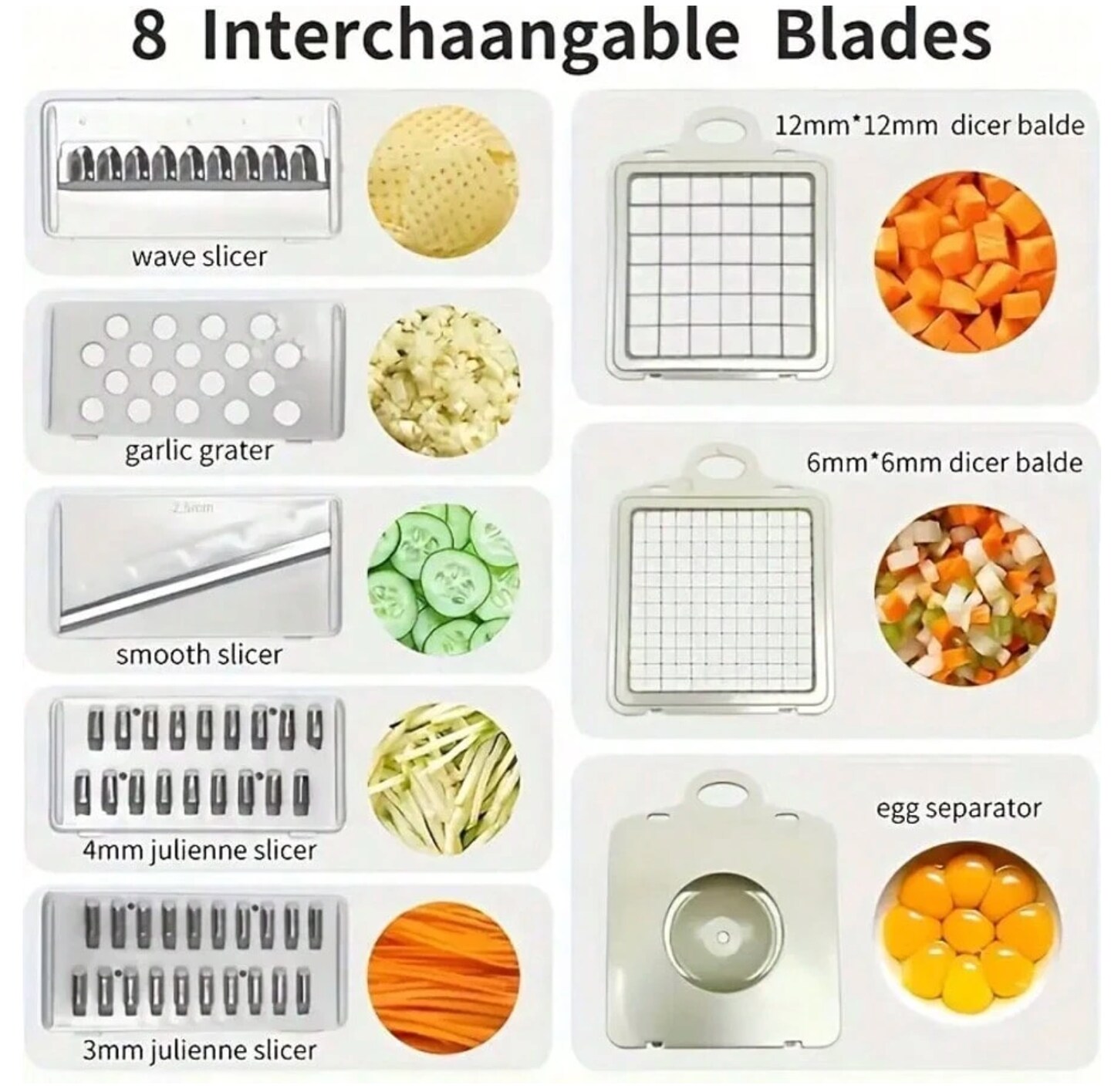 16-in-1 Vegetable Chopper & Spiralizer with Container – Fruit & Veg Slicer Kitchen Gadgets for Quick Meal Prep (White)