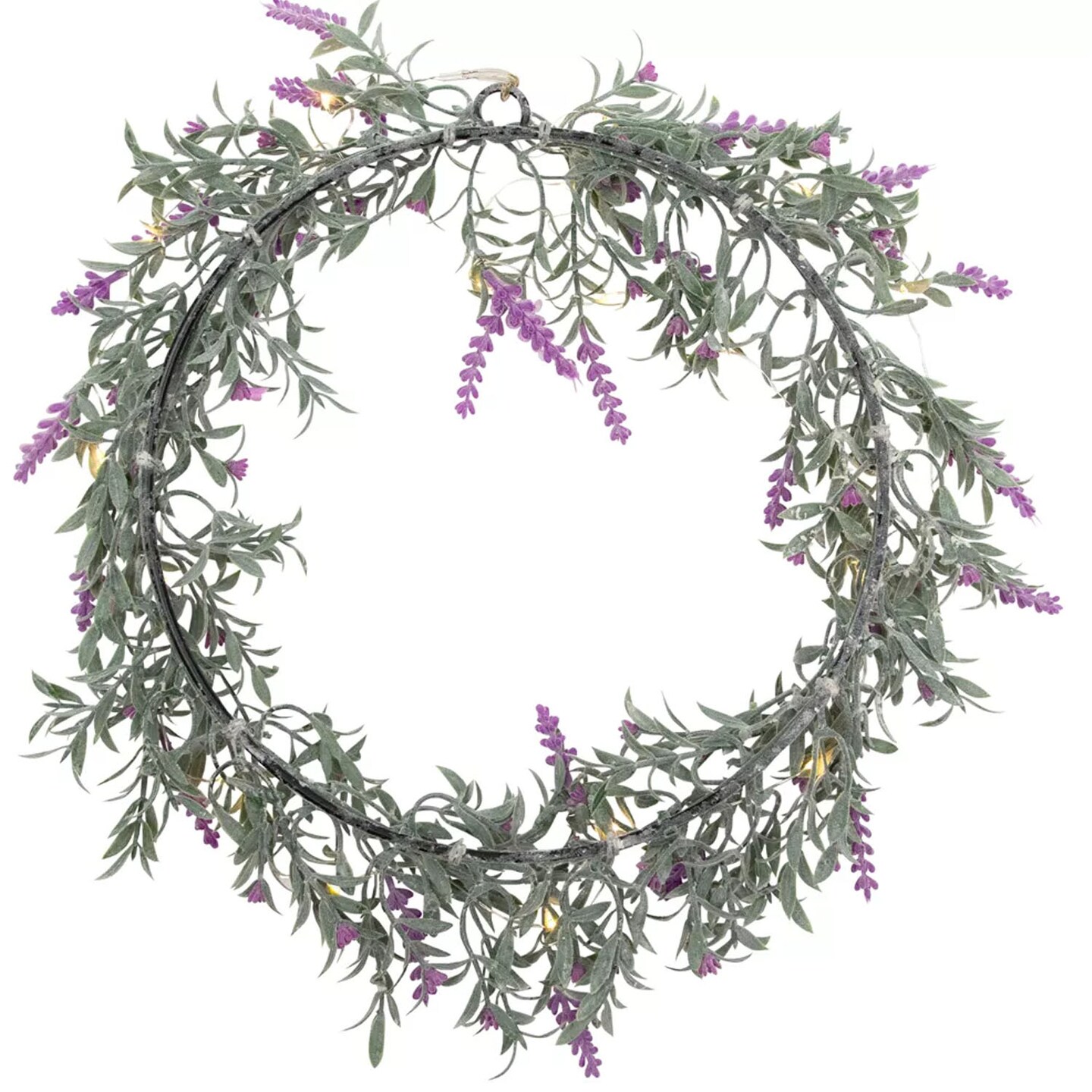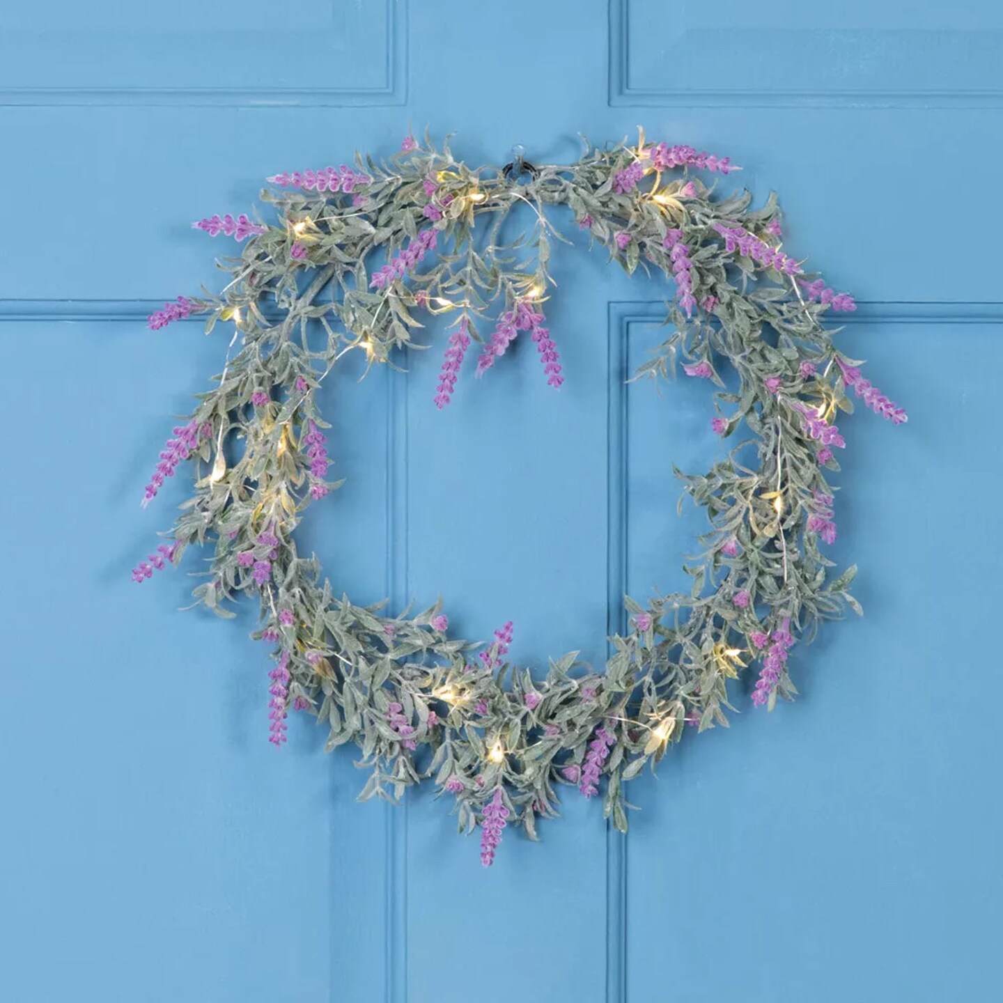 16-Inch Pre-Lit Pink and Lavender Spring Wreath Battery Operated with White LED Lights