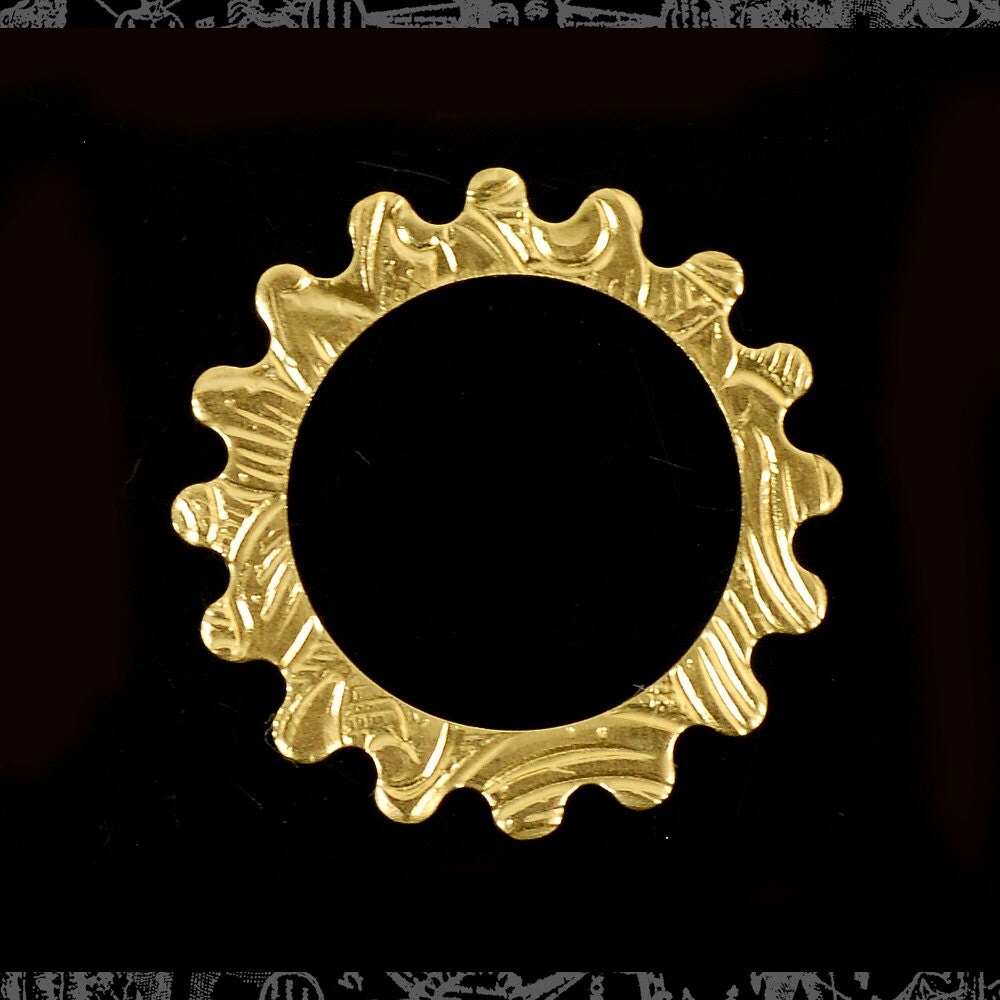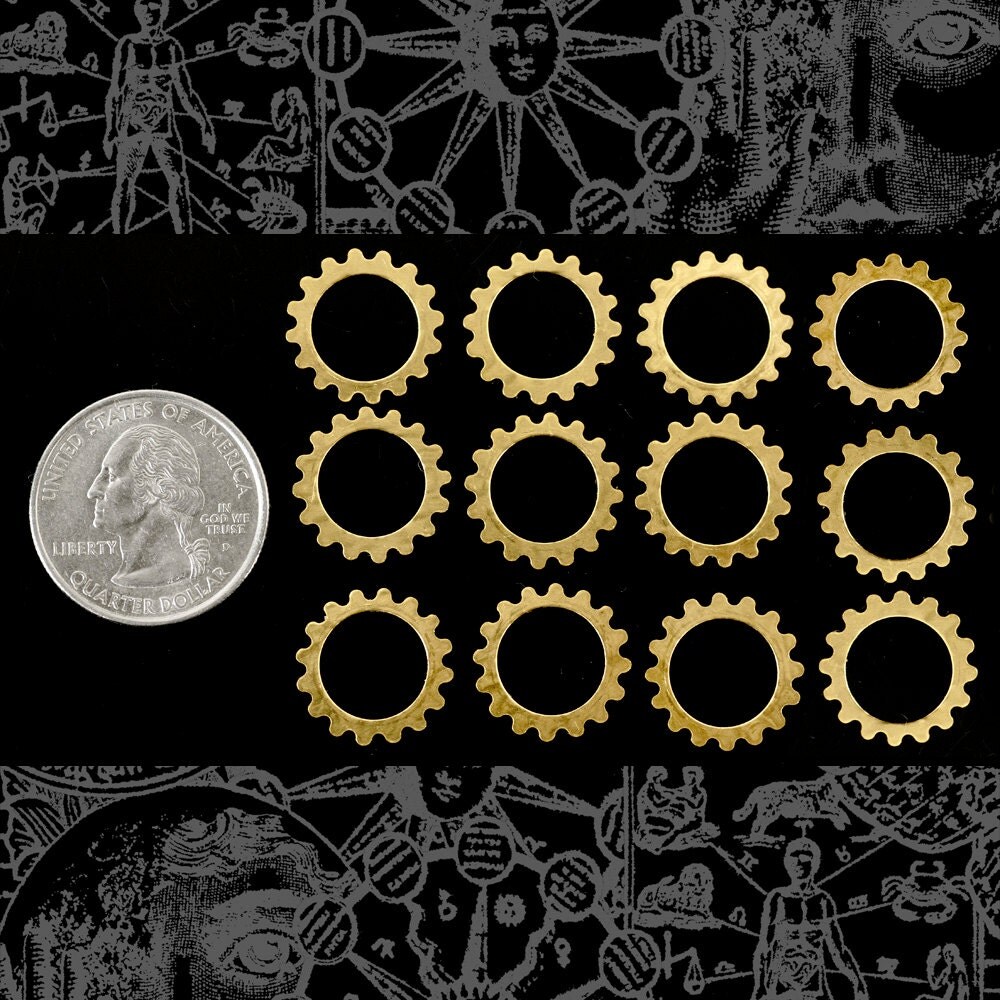 16mm Open Floral Patterned Etched Steampunk Raw Brass Wheels Gears Charms - Set of Twelve - B-PG09