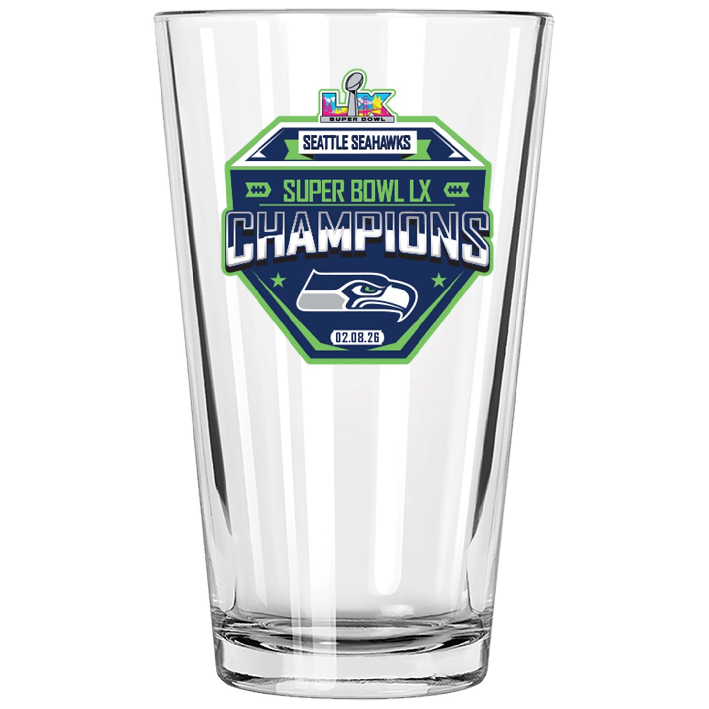 16oz Pint Glass, Direct Print, Super Bowl 60, 2026, Seattle Seahawks
