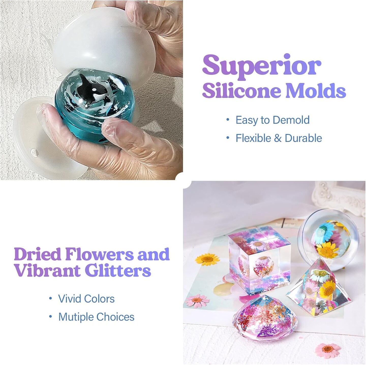 16OZ Resin Molds Silicone Kit Complete Set Bundle with Sphere, Pyramid Molds, Resin Epoxy Starter Kit for Beginner Resin Casting