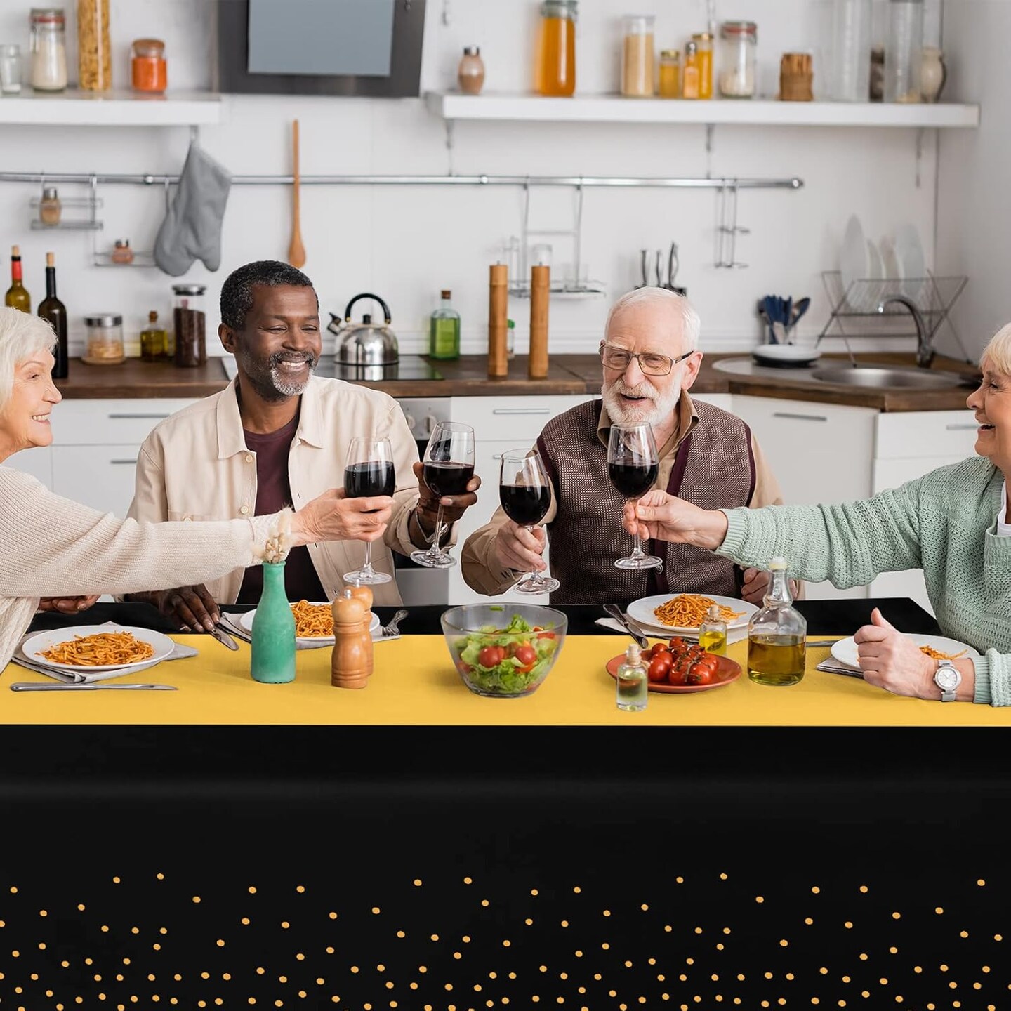 16Pack Disposable Plastic Tablecloths (Black and Gold) 108"L x 54"W