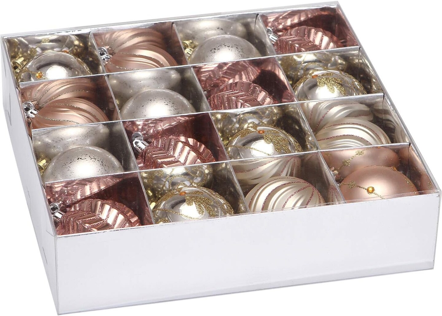 16pcs Christmas Sparkling Ball Ornaments (Rose Gold & Champagne) - 12.8 x 12.8 x 3.15 inches