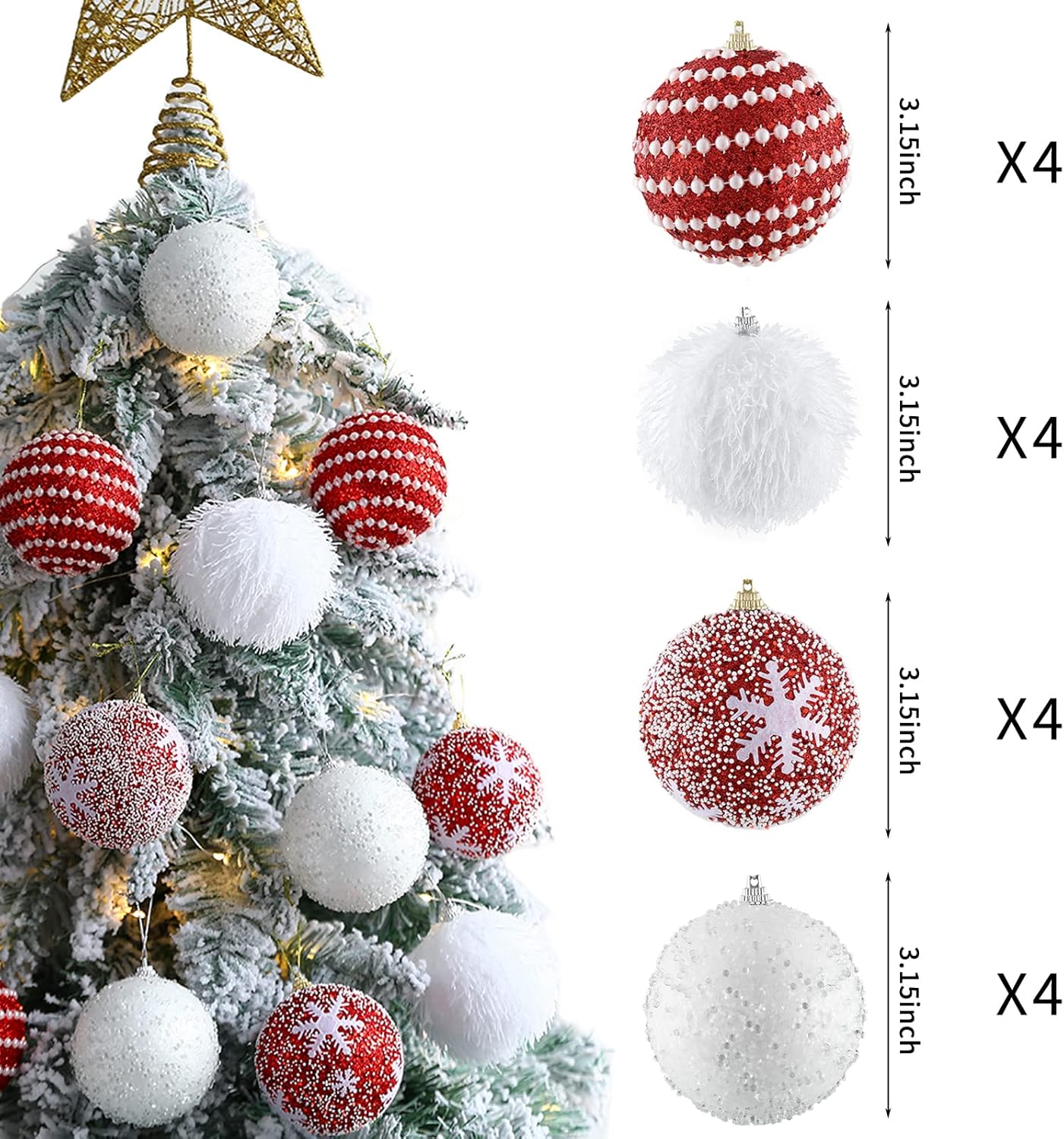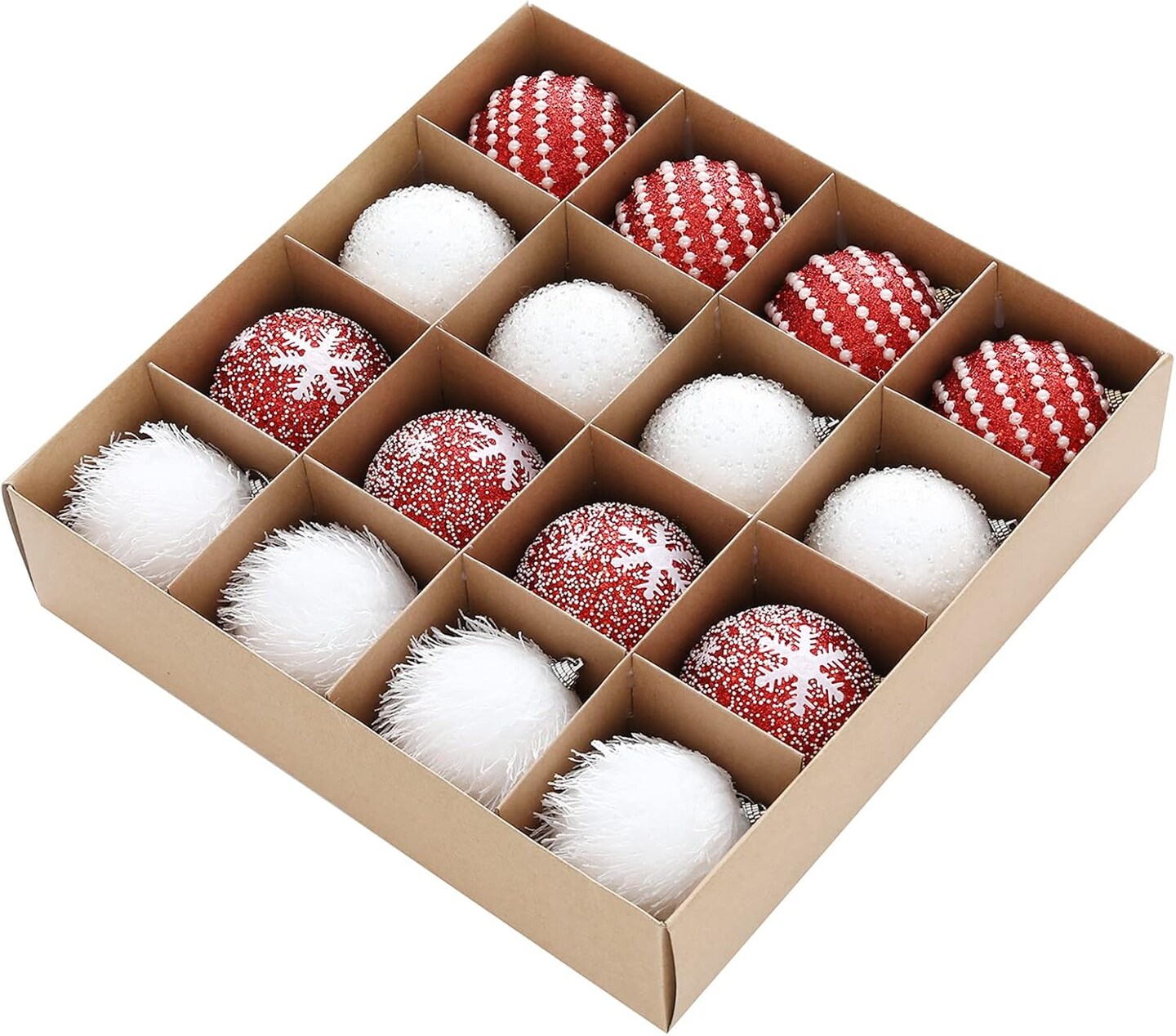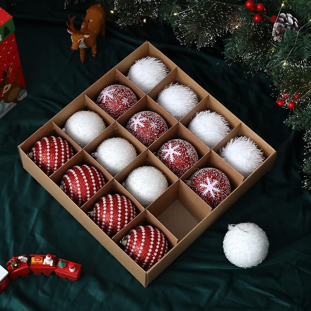 16pcs Christmas Tree Ball Ornament Set (Red, White)