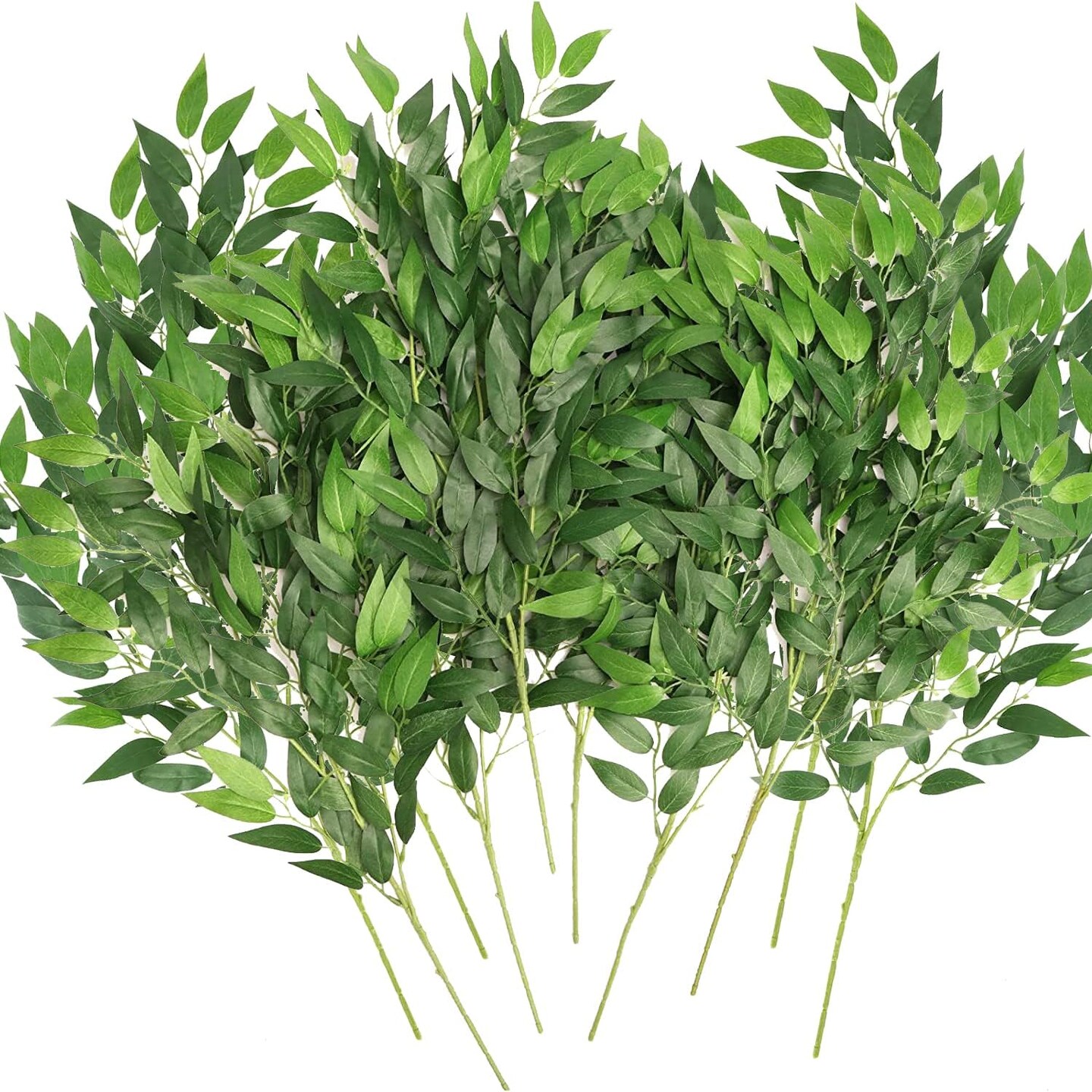 16pcs Faux Green Leaf Garland Branches Hanging Greenery