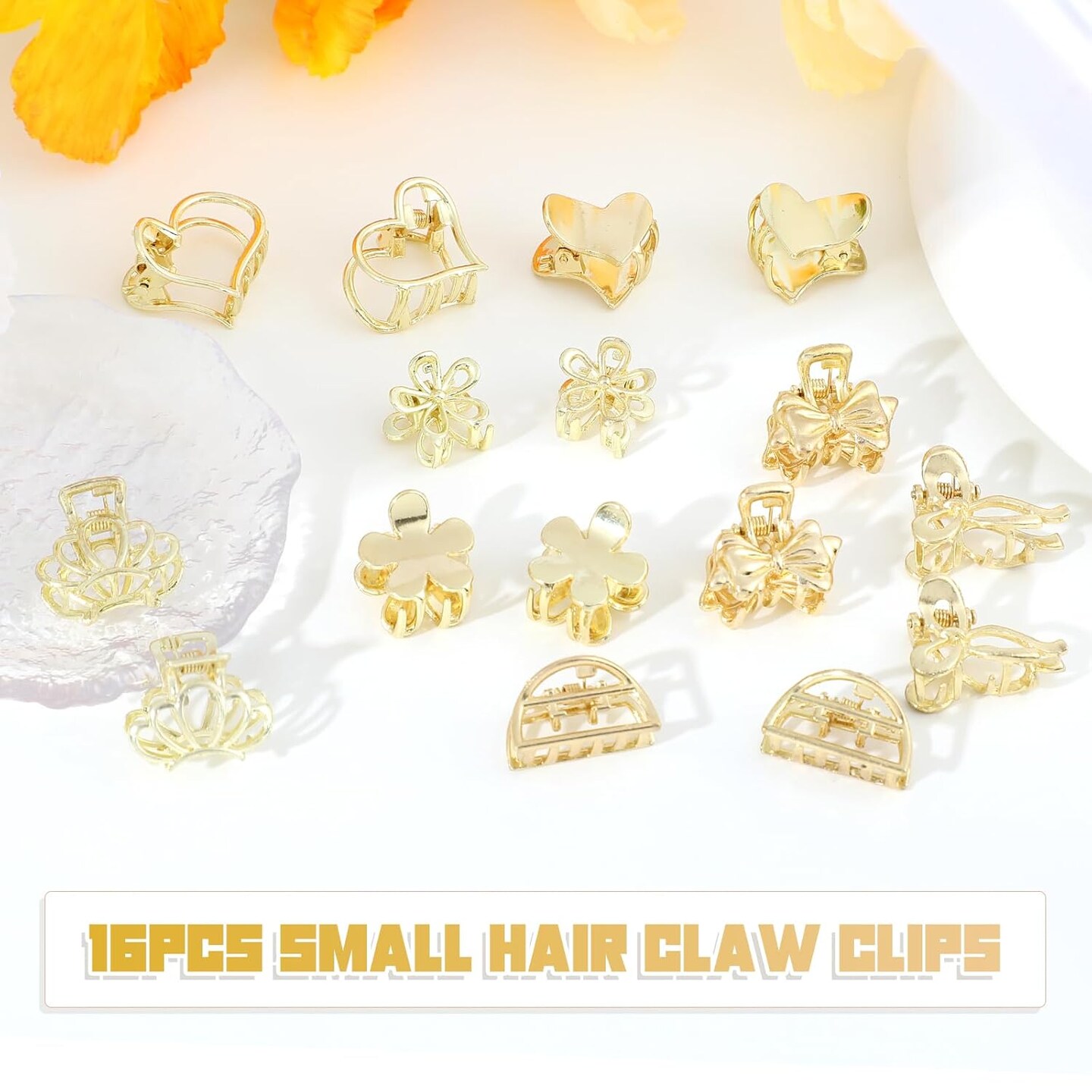 16PCS Small Metal Hair Claw Clips, Gold Mini Hair Clips for Thin Thick Hair