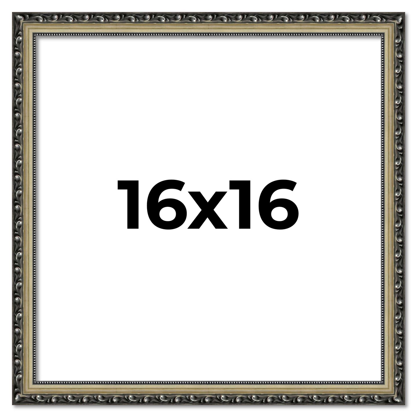 16x16 Silver Wood Picture Frame - UV Acrylic, Foam Board Backing, Hanging Hardware