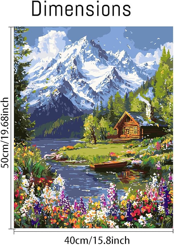 16x20 Inch Mountain Landscape Paint by Numbers for Adults - DIY Cabin in the Woods Acrylic Painting Kit for Beginners - Nature Scene Canvas Art for Home Decor & Creative Gifting (Unframed)