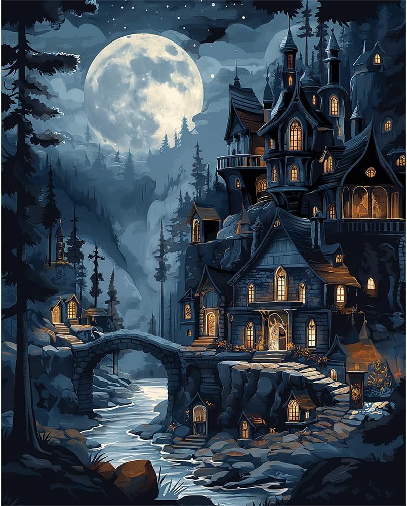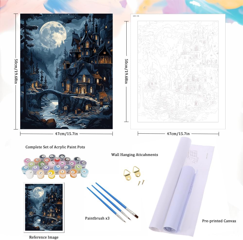 16x20 Inch - Paint by Numbers for Beginner Moonlit Castle