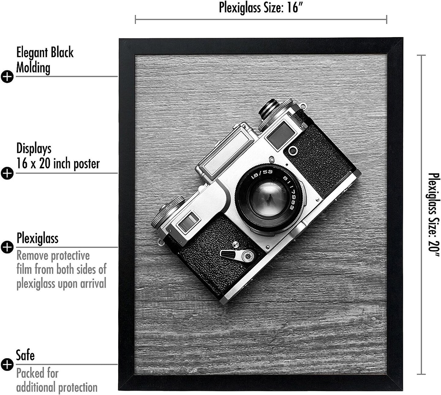 16x20 Picture Frame with Polished Plexiglass, Epic Collection, Gallery Wall Frames with Engineered Wood, Wide Photo Frame for Wall Display, Black