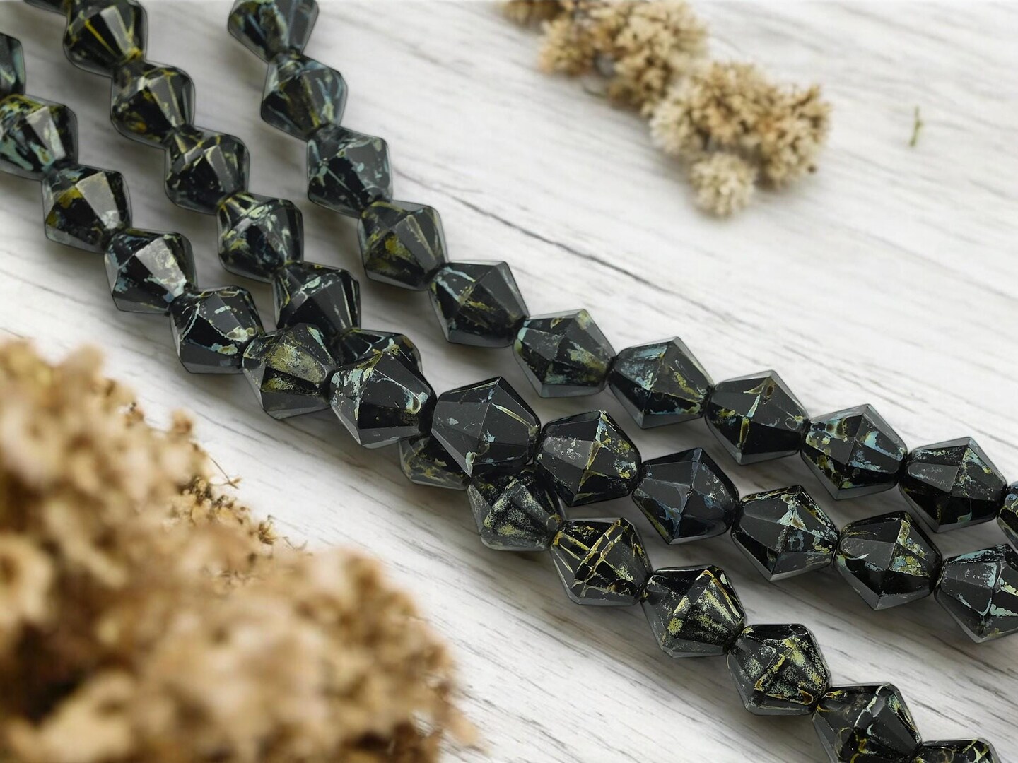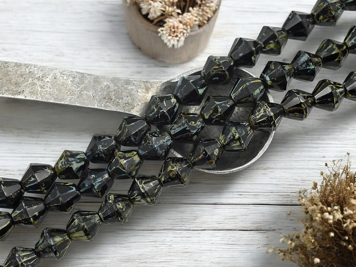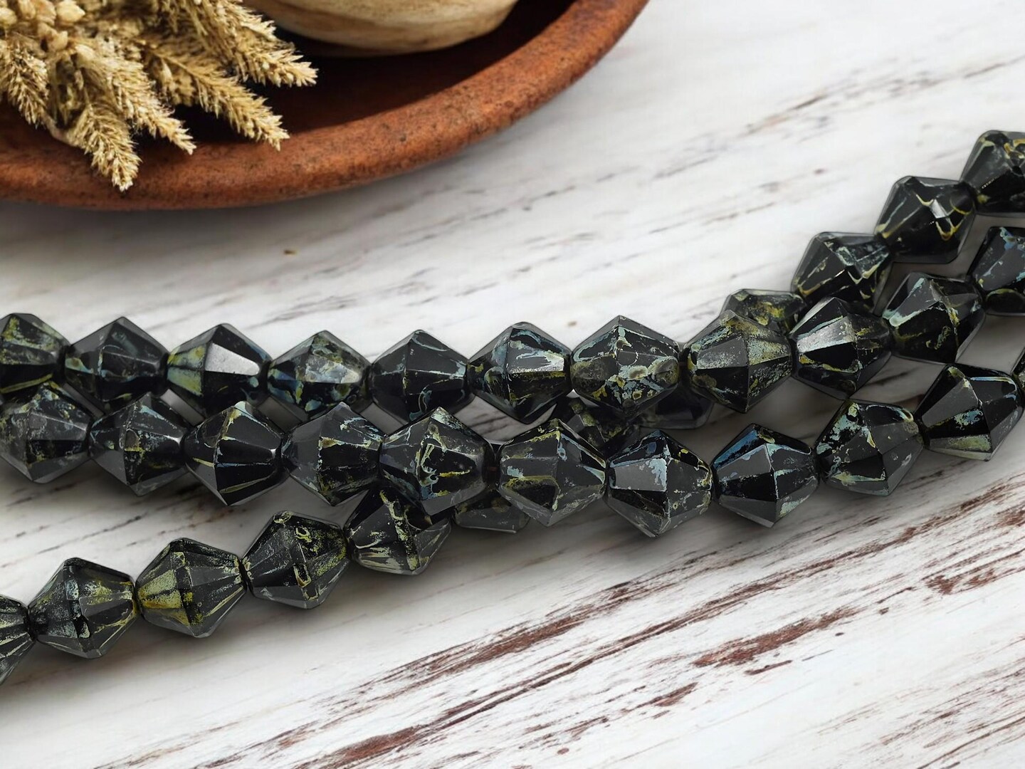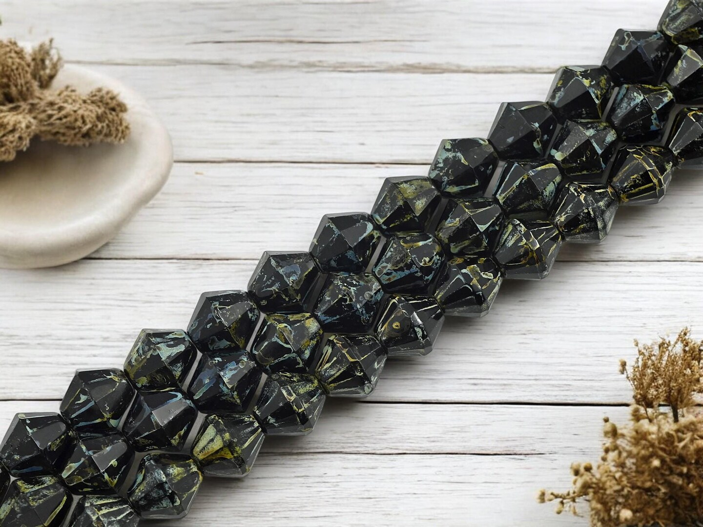 *17* 12mm Jet Travertine Faceted Bicone Beads
