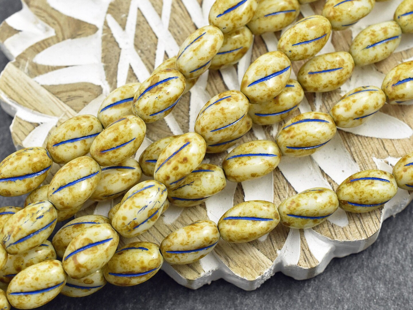 *17* 8x11mm Blue Washed Alabaster Picasso Coffee Bean Oval Beads