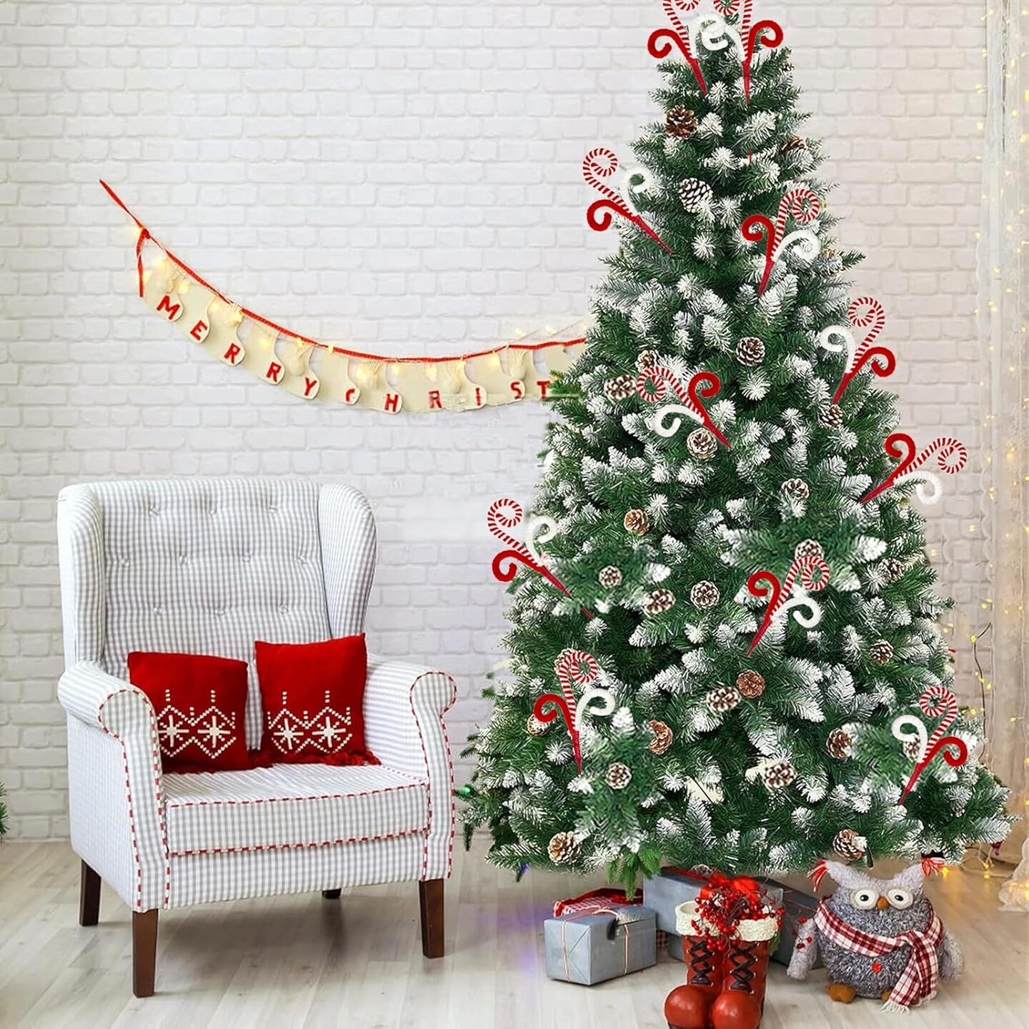 17 Inch - 6 Pcs Candy Cane Christmas Tree Topper Filler(Red)