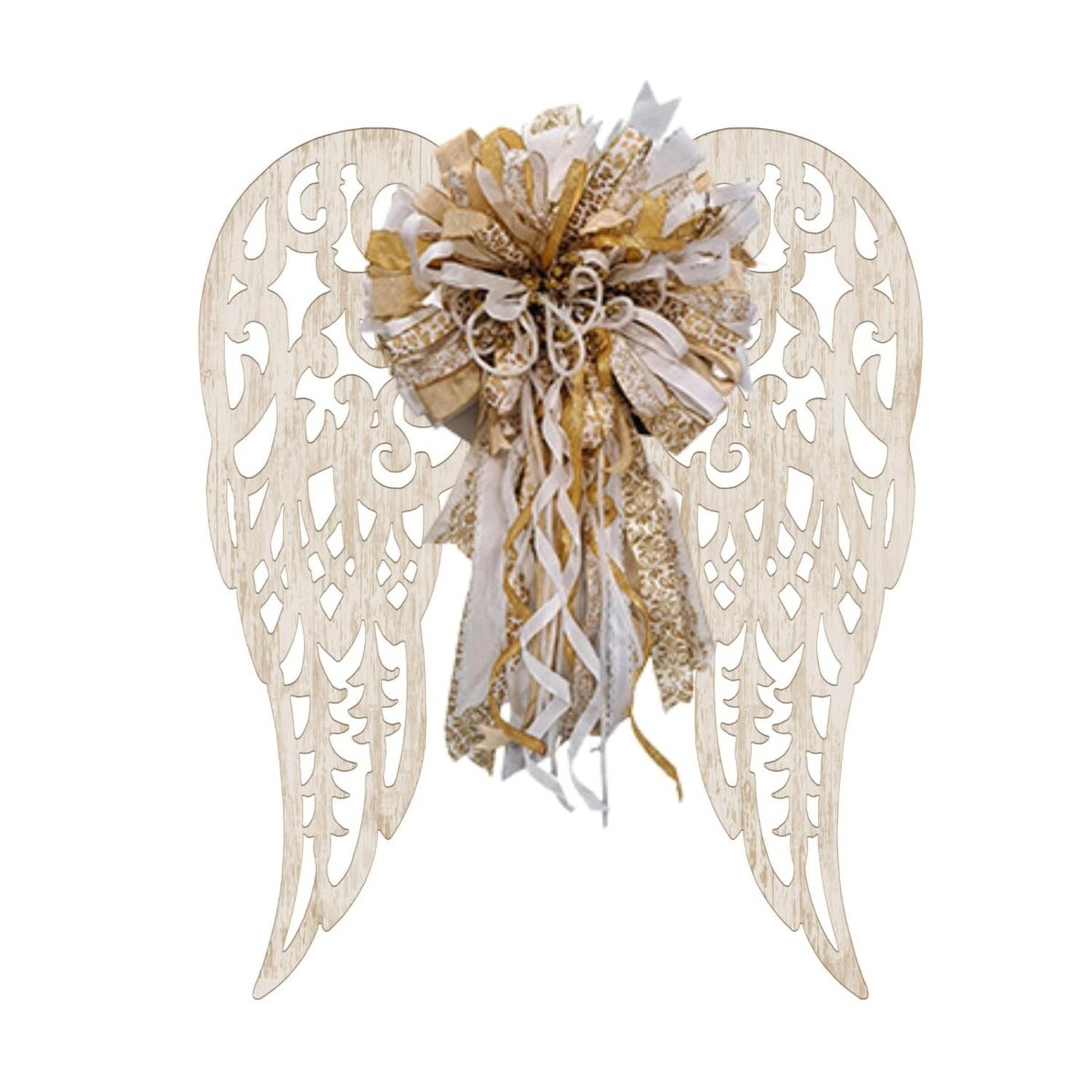 17" Metal Filigree Angel Wings: Antique Cream