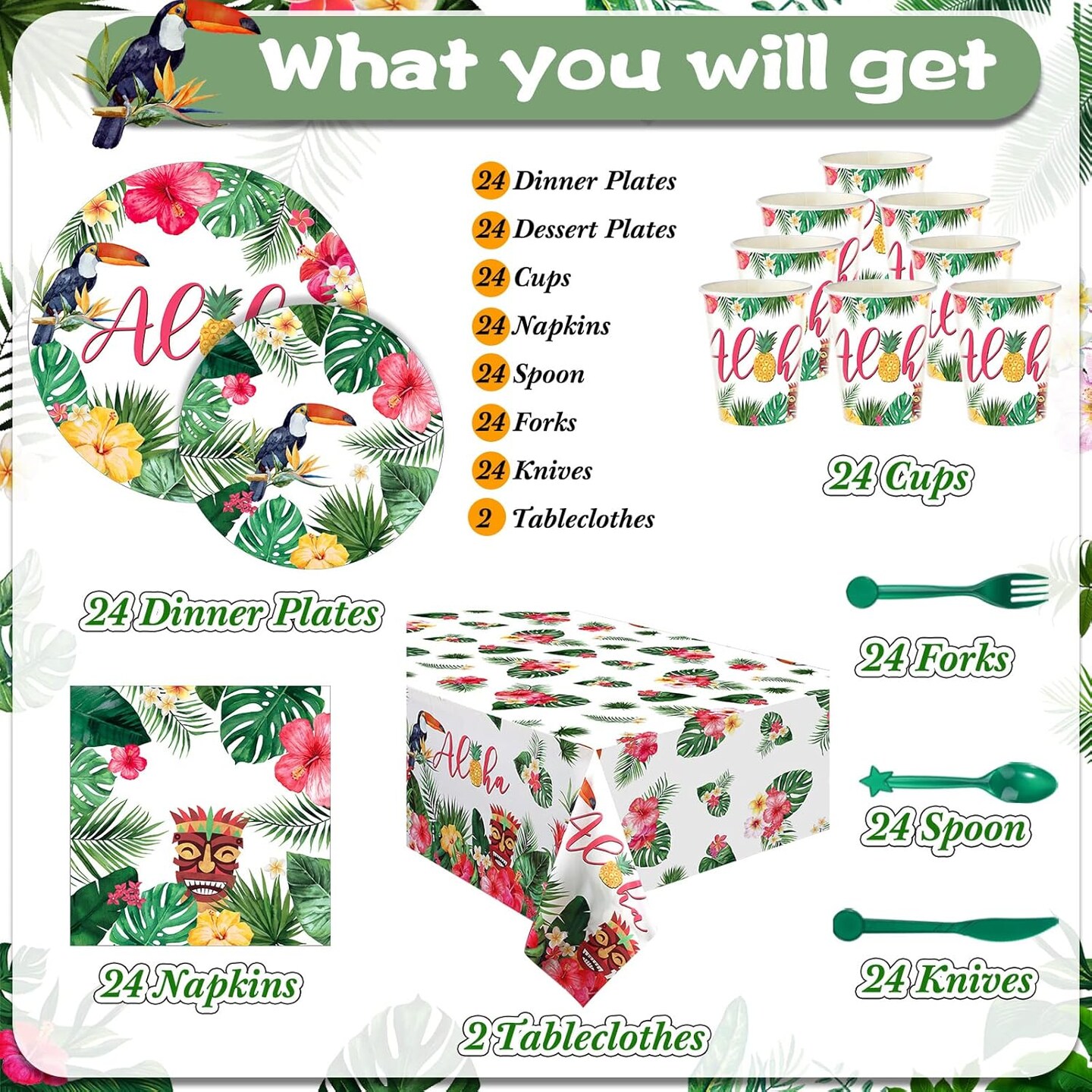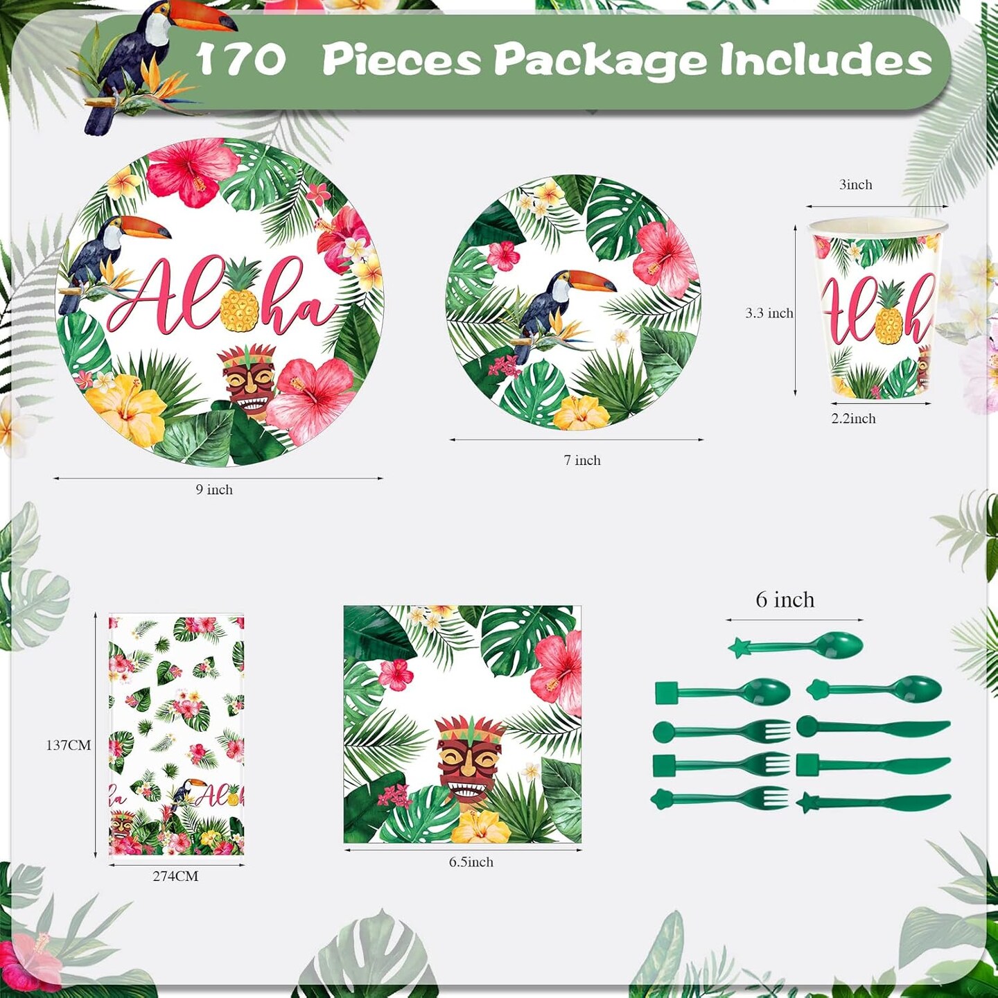 170 Pcs Hawaiian Luau Party Supplies Aloha Plates and Napkins Party Supplies ( 24 Guests)