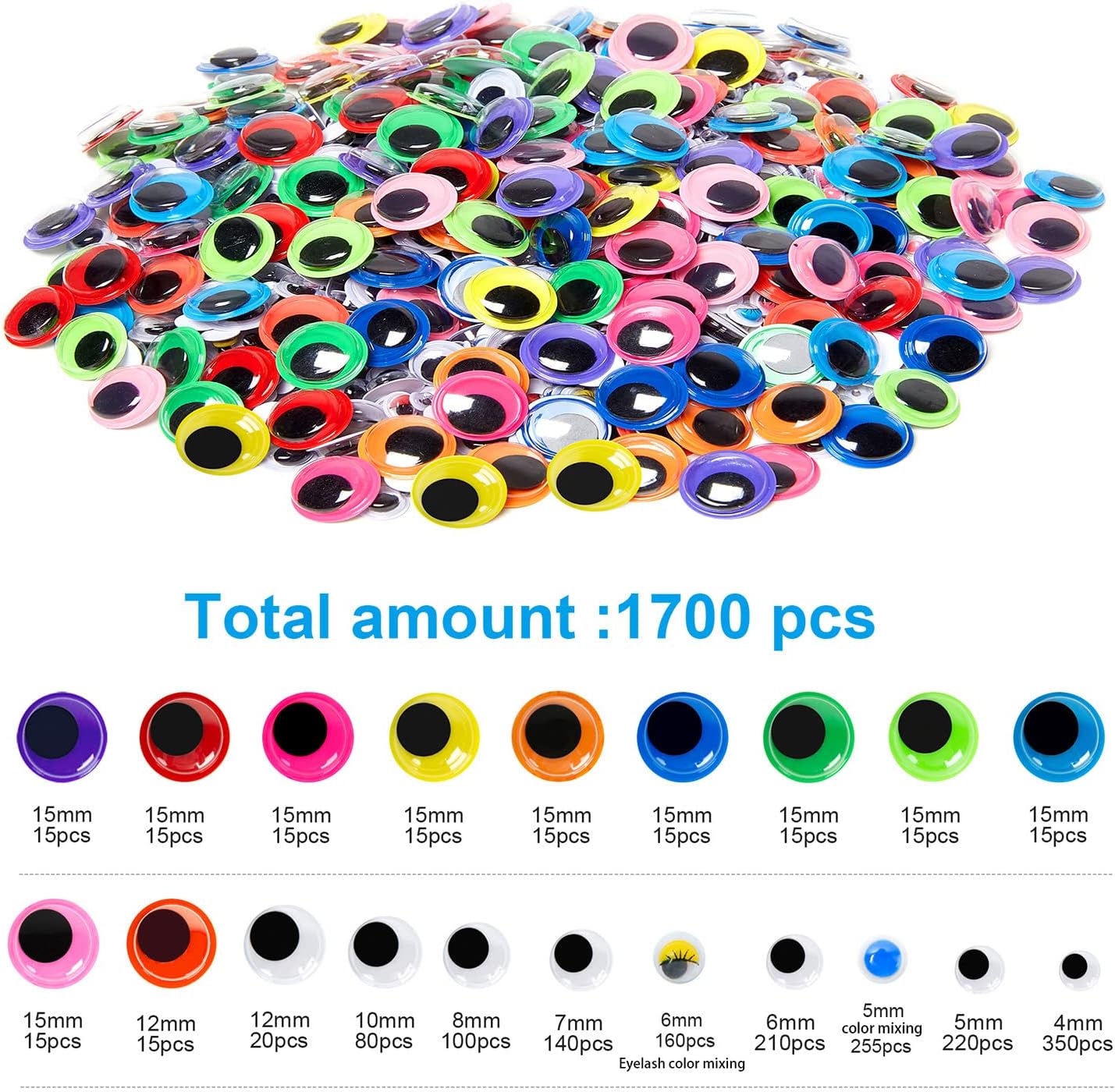 1700pcs Googly Wiggle Eyes Self Adhesive, for Craft Sticker Eyes Multi Colors and Sizes for DIY