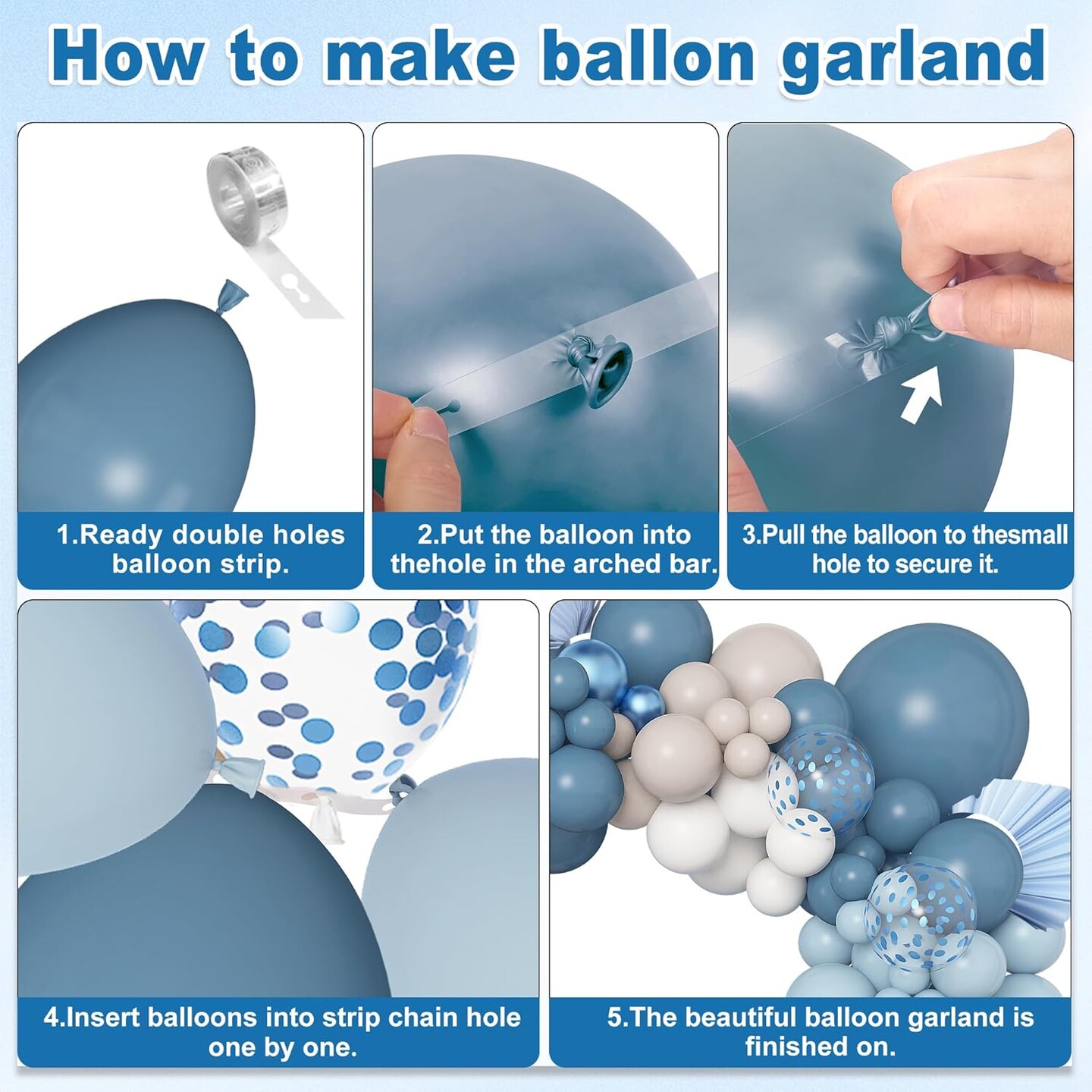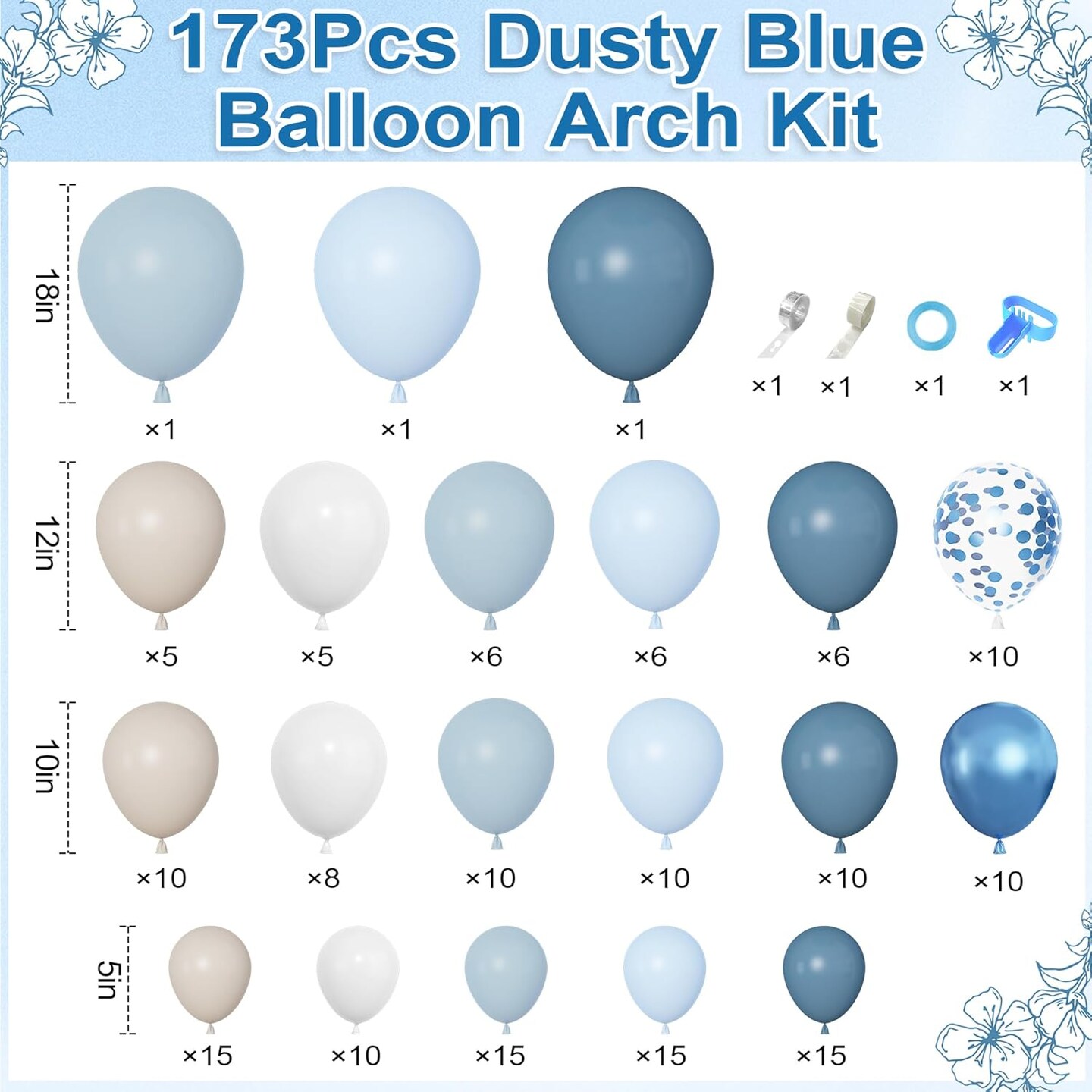 173Pcs Dusty Blue Balloon Arch Garland Kit, Baby Light Dusty Blue White Sand Metallic Blue Confetti Balloons for Boy Baby Shower Gender Reveal Wedding Birthday Party Decorations Supplies