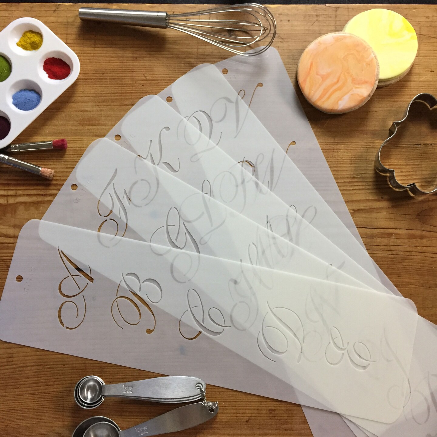 1.75-Inch Script Monogram Cake Stencil | C110 by Designer Stencils | Cake Decorating Tools | Baking Stencils for Royal Icing, Airbrush, Dusting Powder | Reusable Plastic Food Grade Stencil for Cakes | Easy to Use & Clean Cake Stencil