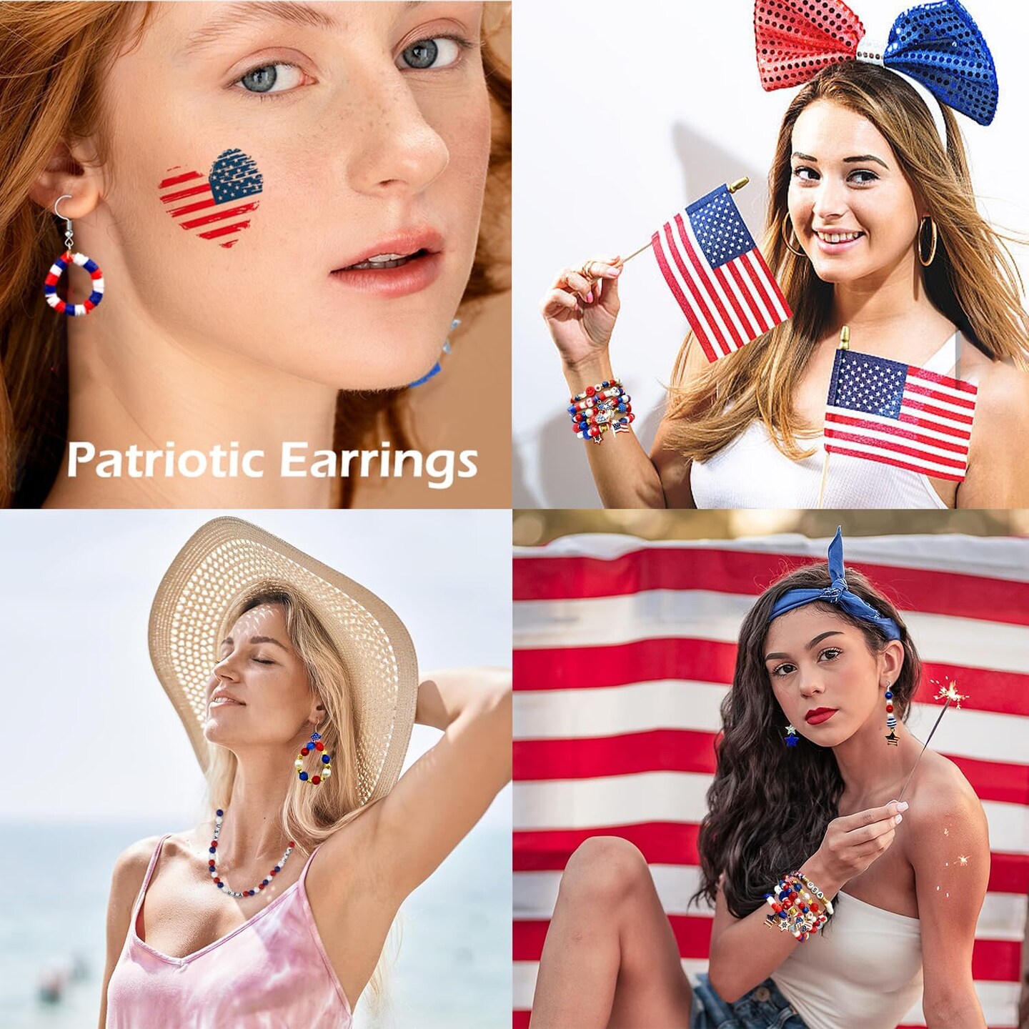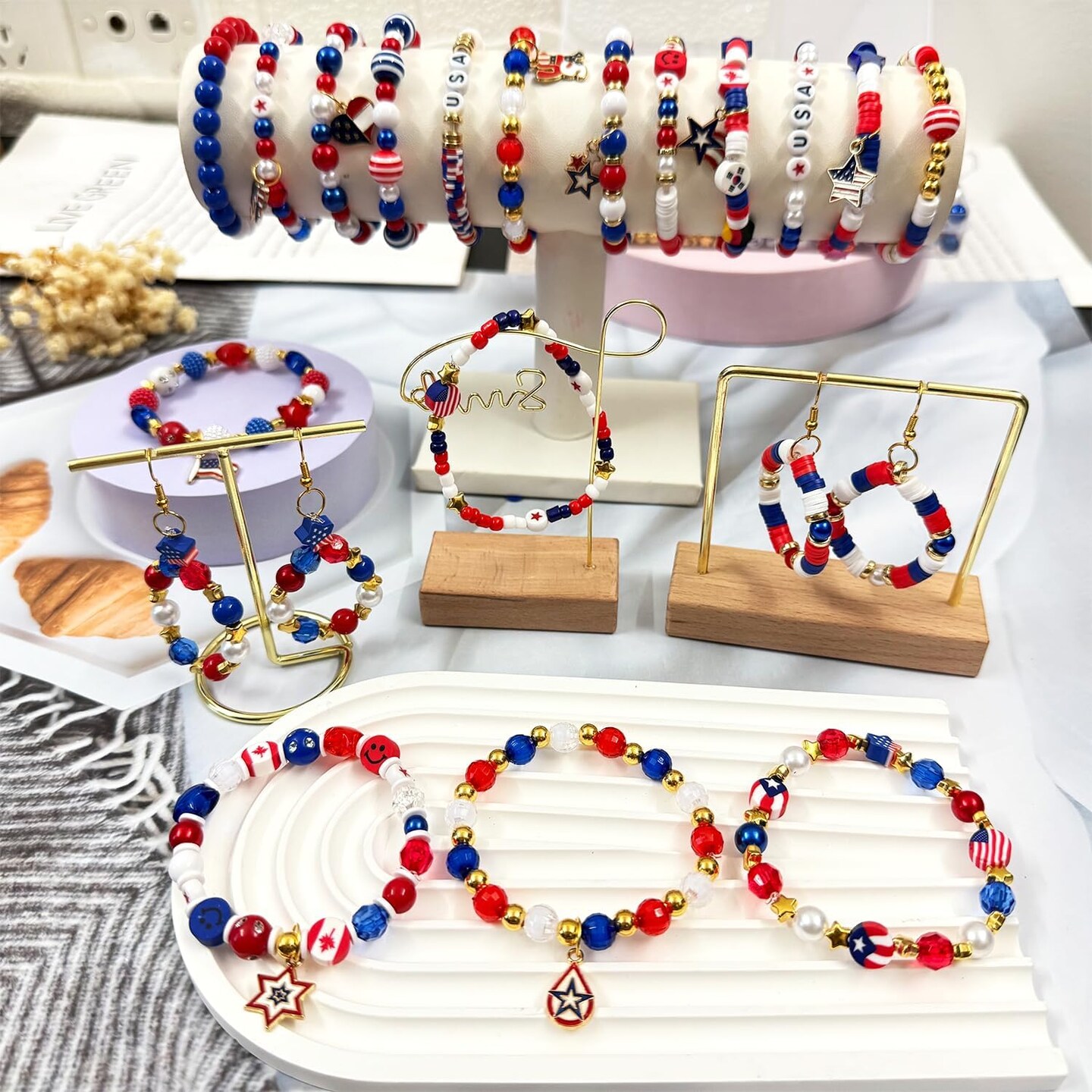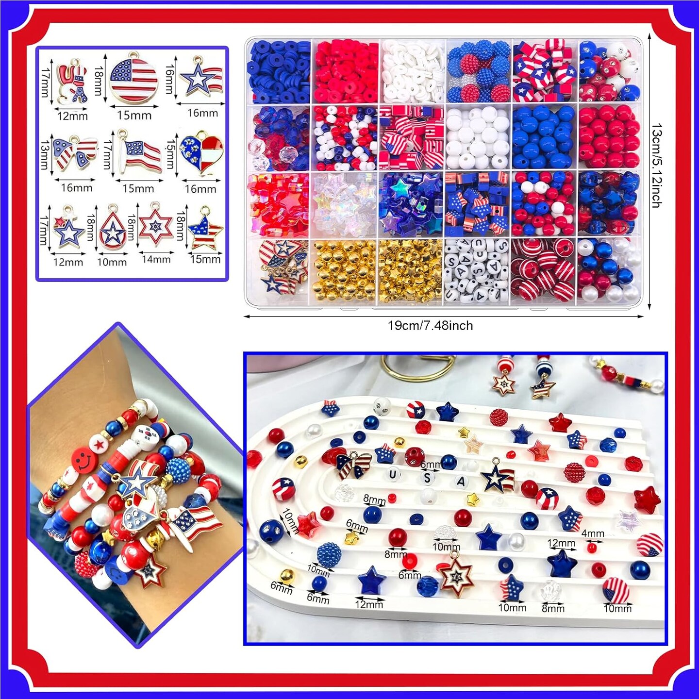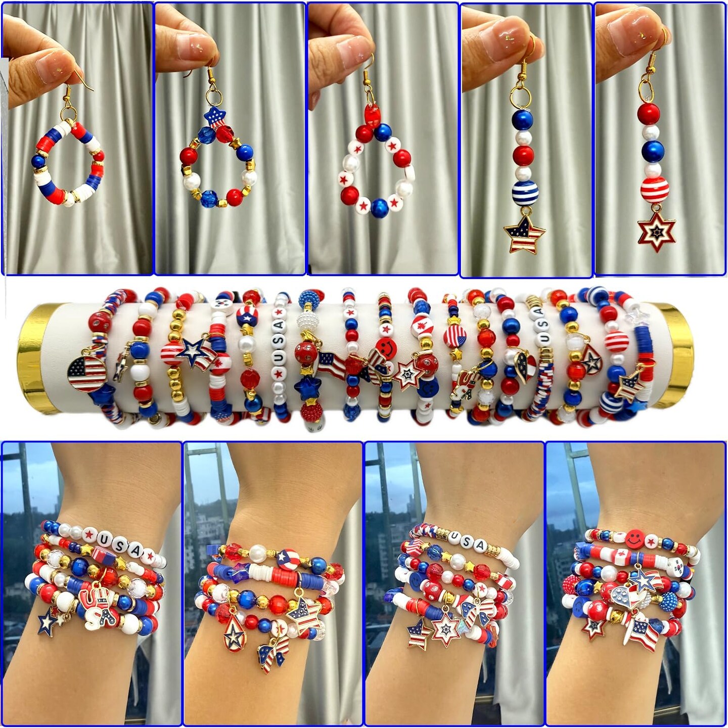 1760Pcs Red White and Blue Beads for Bracelets Kit, 4th of July Bead Patriotic Beads for Jewelry Making America Flag Heishi Clay Beads Star Round Pearl Beads Letter Beads for Earrings DIY Craft