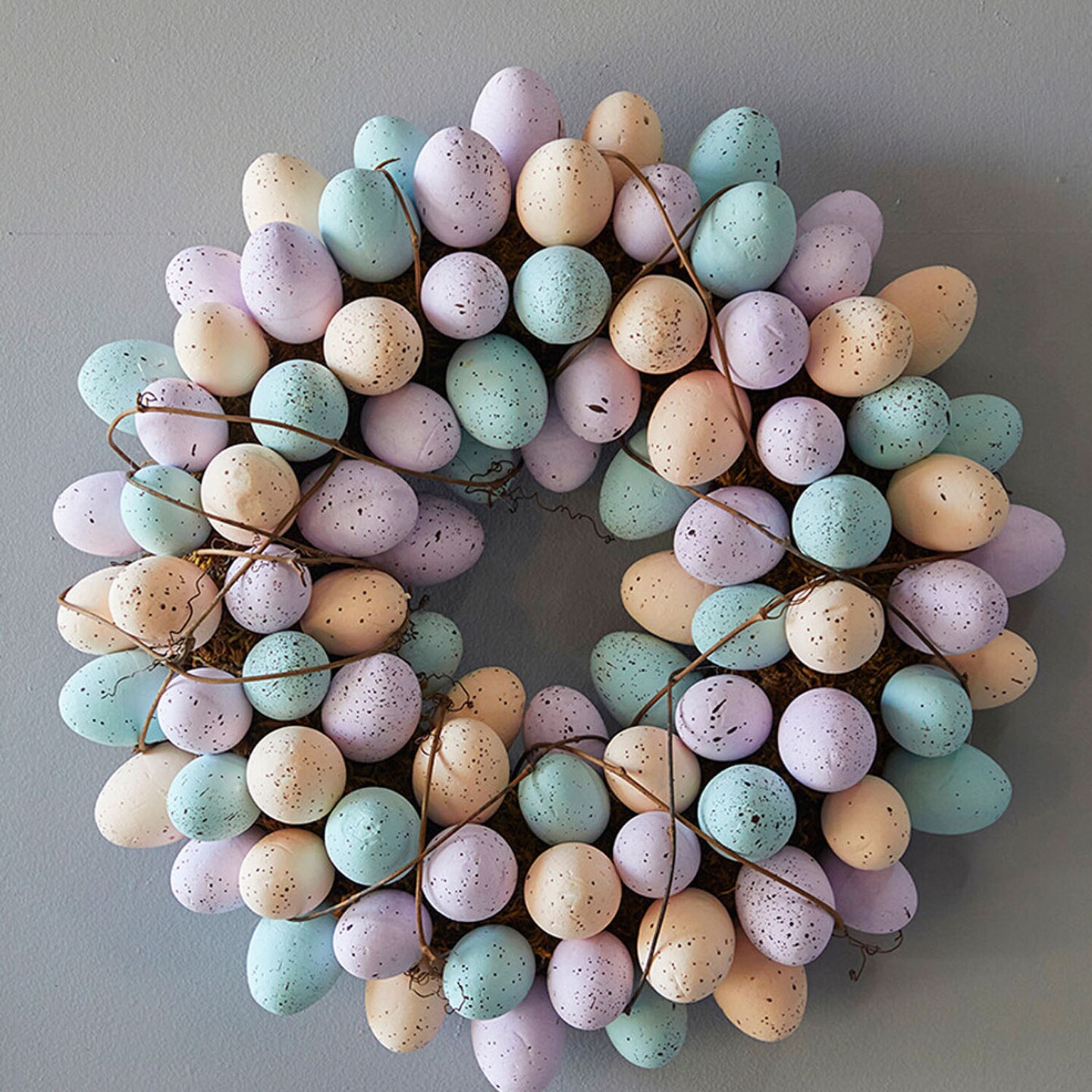 17.75" Easter Egg Wreath Pastel Spring Wreath with Speckled Eggs & Greenery for Door or Wall