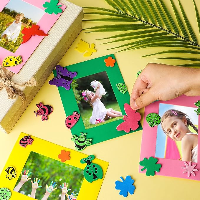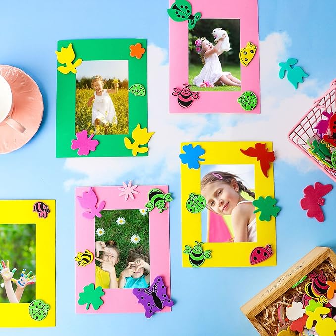 177-Piece Spring Foam Picture Frame Craft Kit - DIY Photo Frame Set with Flower & Butterfly Stickers - Creative Art Project for Kids, Classroom Activities, and School Bulletin Board Decor