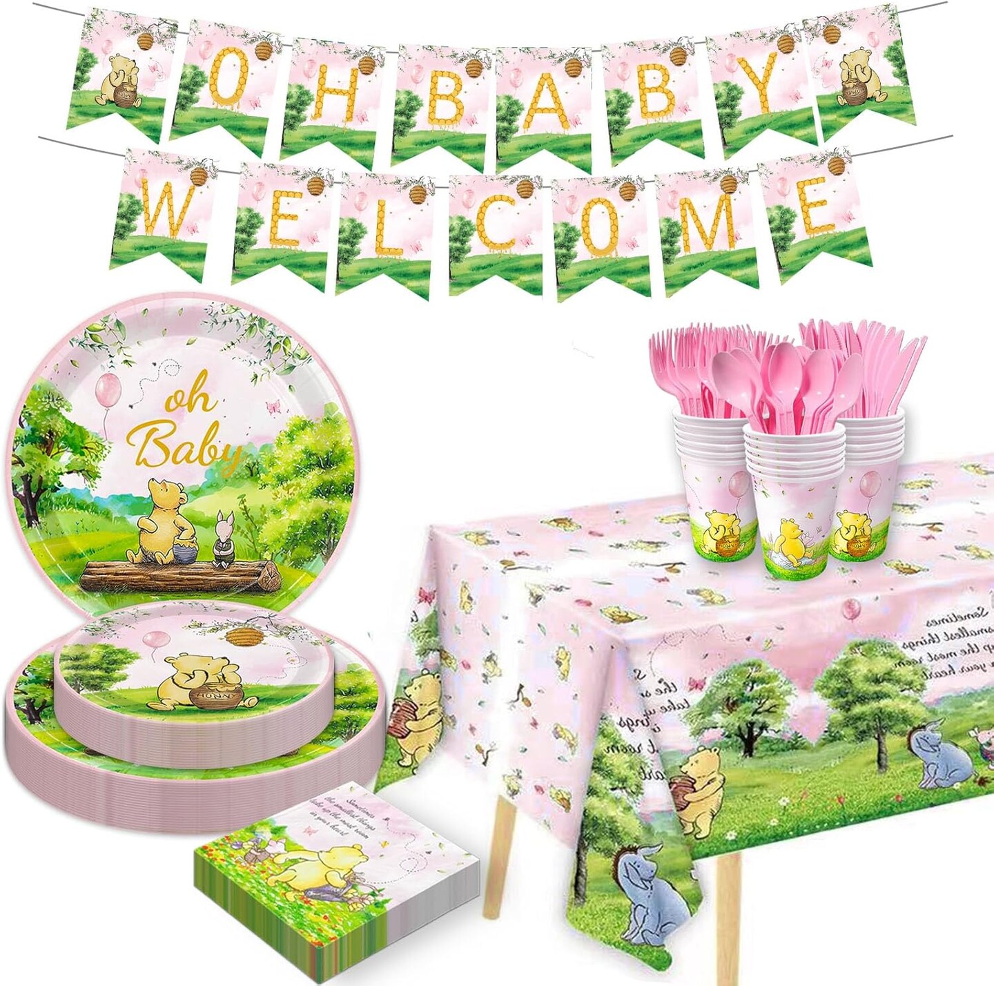 178pcs Pink Winnie Bear Baby Shower Decorations - 25 Guests (Pink Winnie Bear Baby Shower Pooh Decorations)