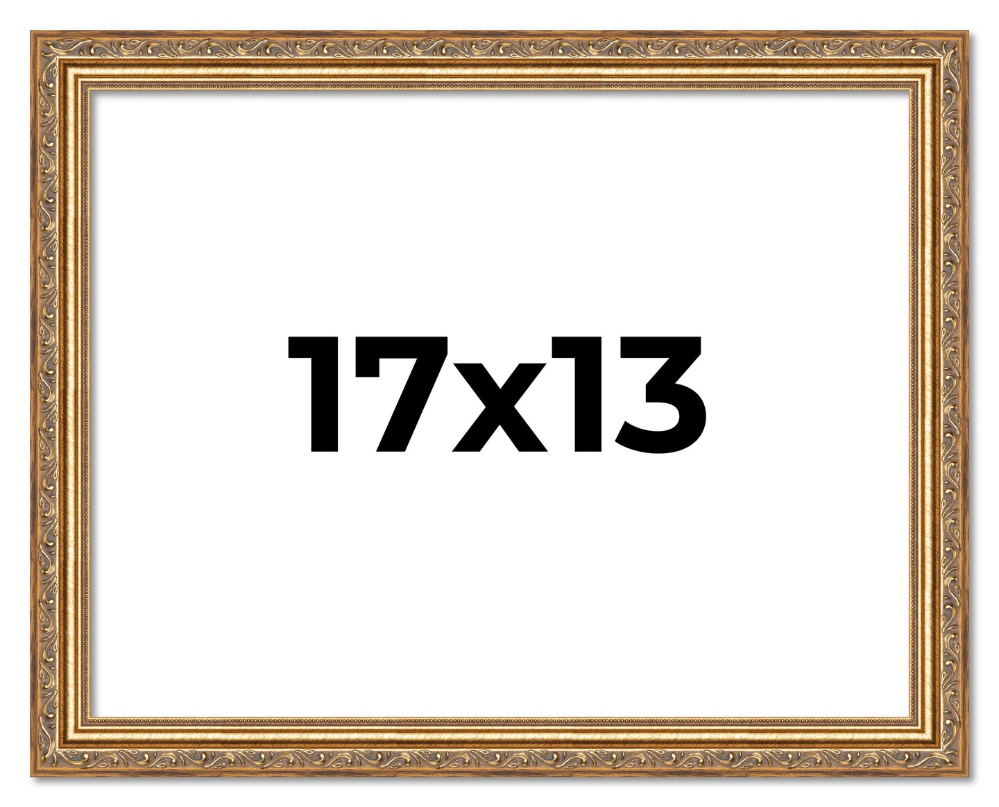 17x13 Solid Wood Antique Picture Frame with UV-Resistant Acrylic & Acid-Free Backing, Available in 4 Finishes: Bronze, Gold, Silver, and Gold with Black