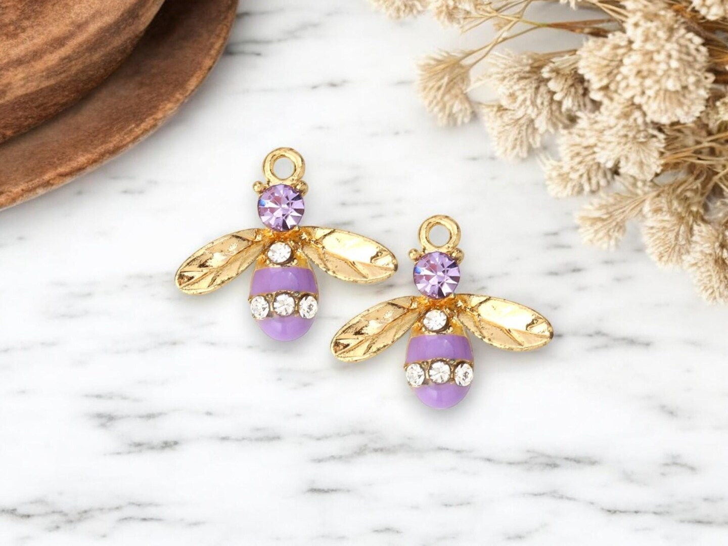 17x15mm Gold Plated Enamel + Rhinestone Bee Charms - Choose Your Color