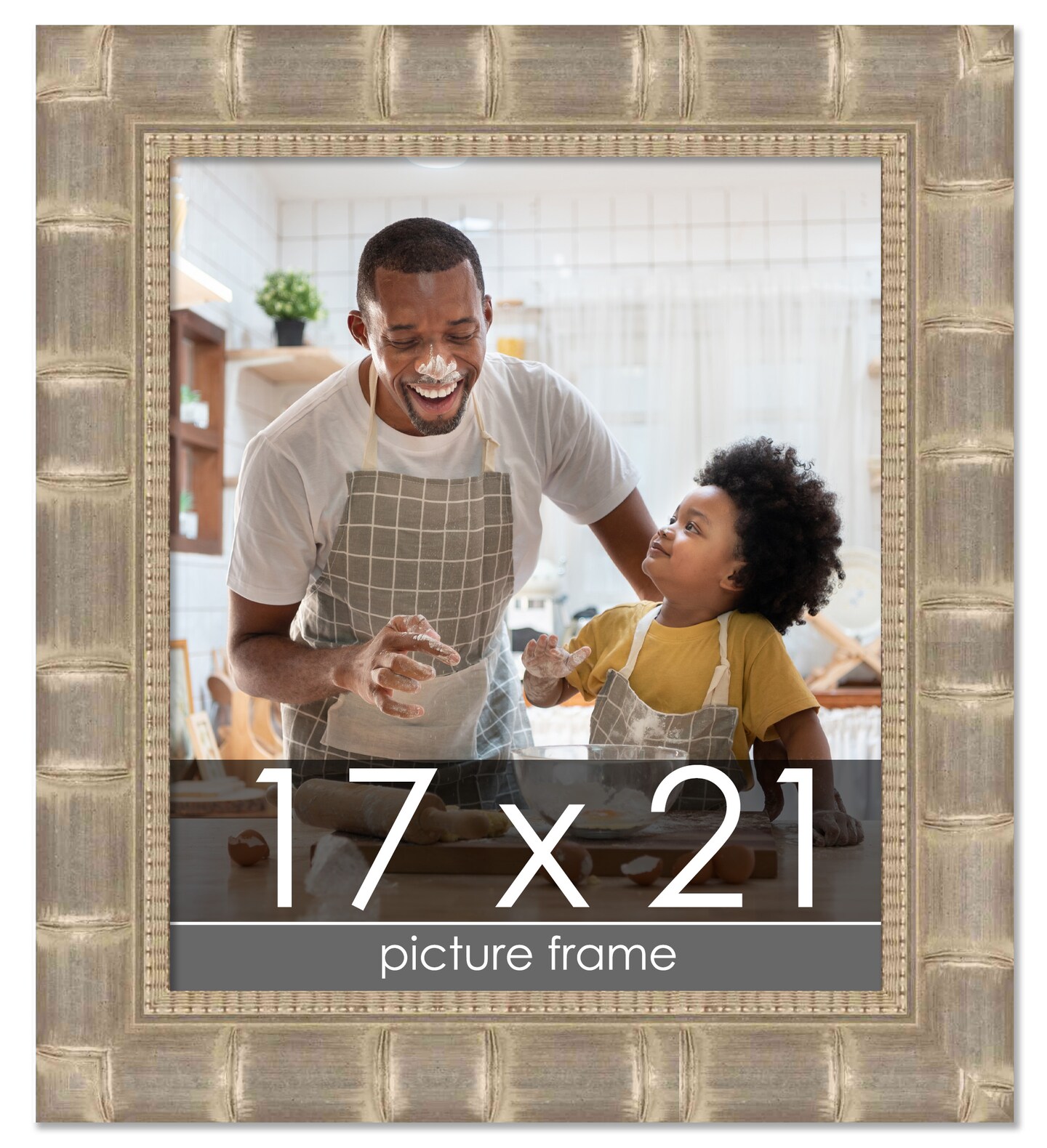 17x21 Silver Wide Bamboo Picture Frame - UV Acrylic, Foam Board Backing, Hanging Hardware