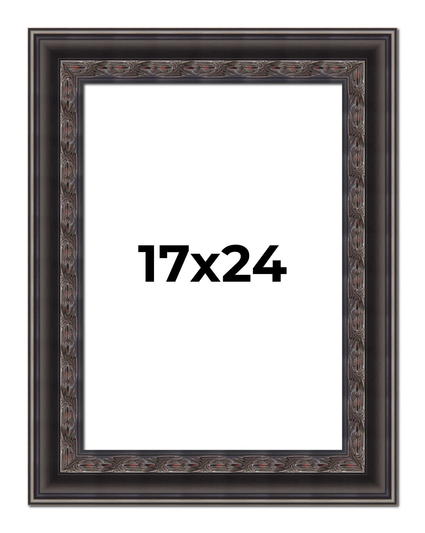 17x24 3.5" Wide Ornate Black Picture Frame - UV Acrylic, Foam Board Backing, Hanging Hardware