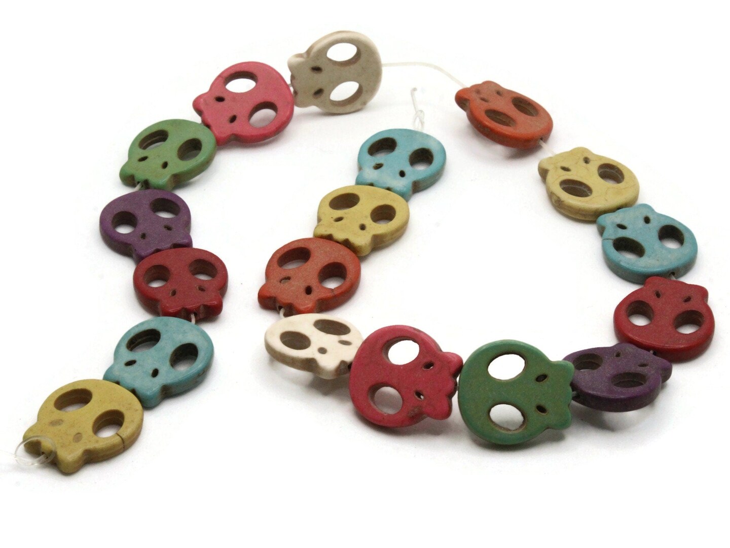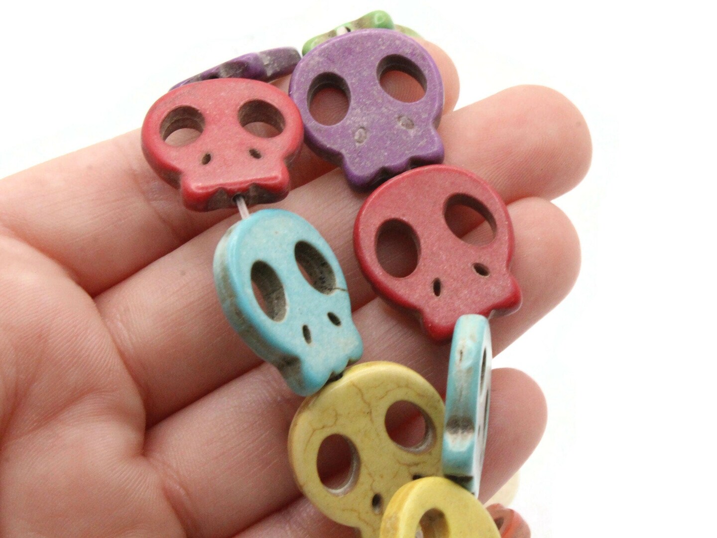 18 21mm Howlite Flat Skull Stone Dyed Mixed Color Beads