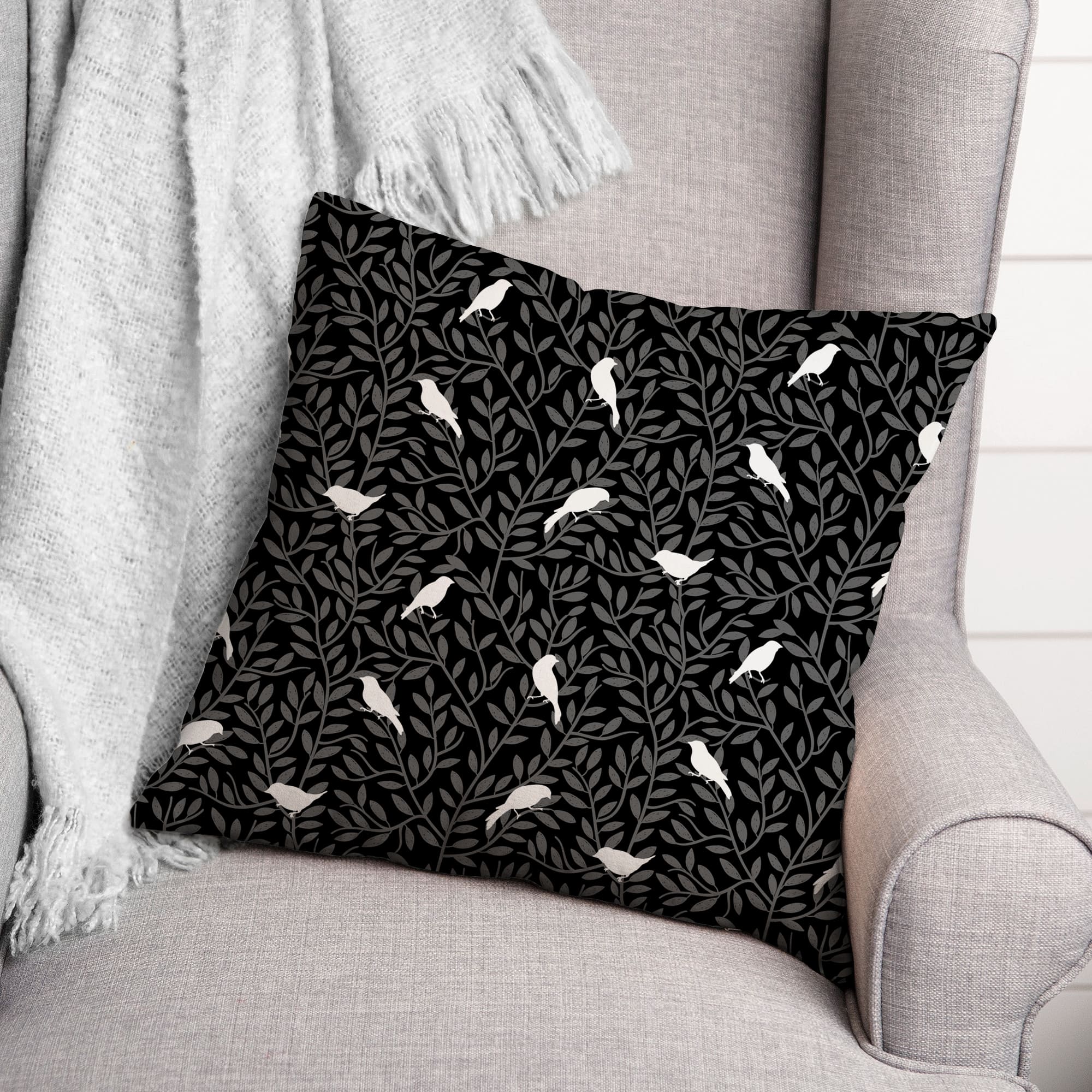 18" Birds On Leaves Indoor/Outdoor Pillow